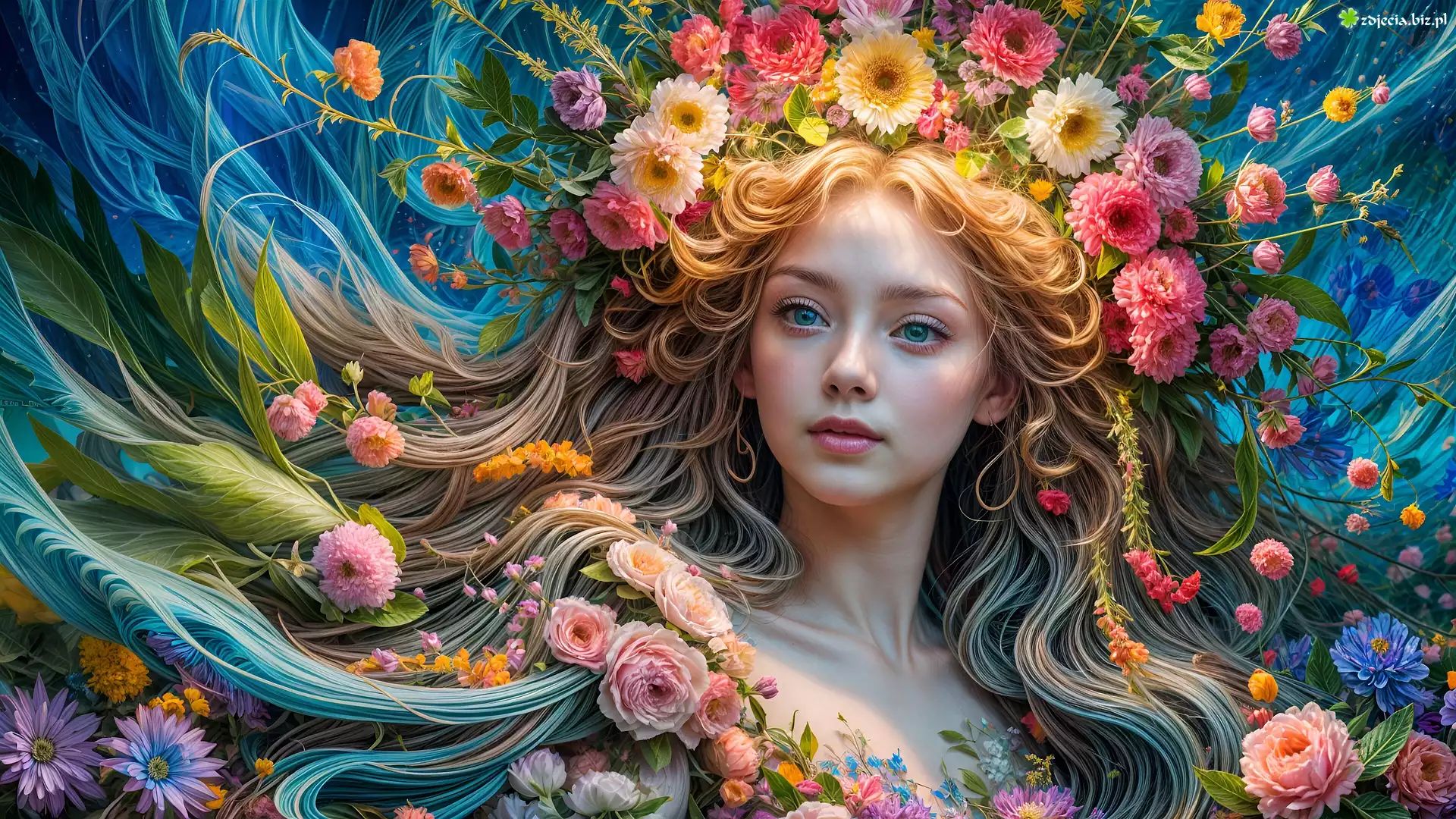 Zdjęcie Dziewczyna, Kwiaty, Róże, Grafika
