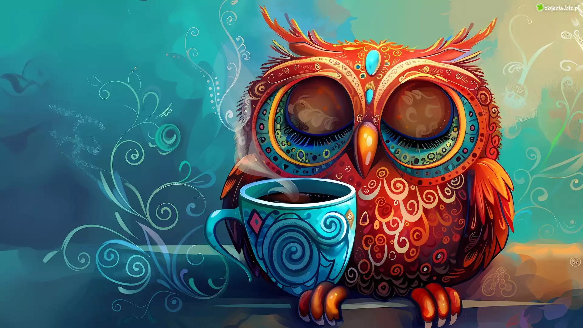 Zdjęcie, Grafika, Sowa, Filiżanka