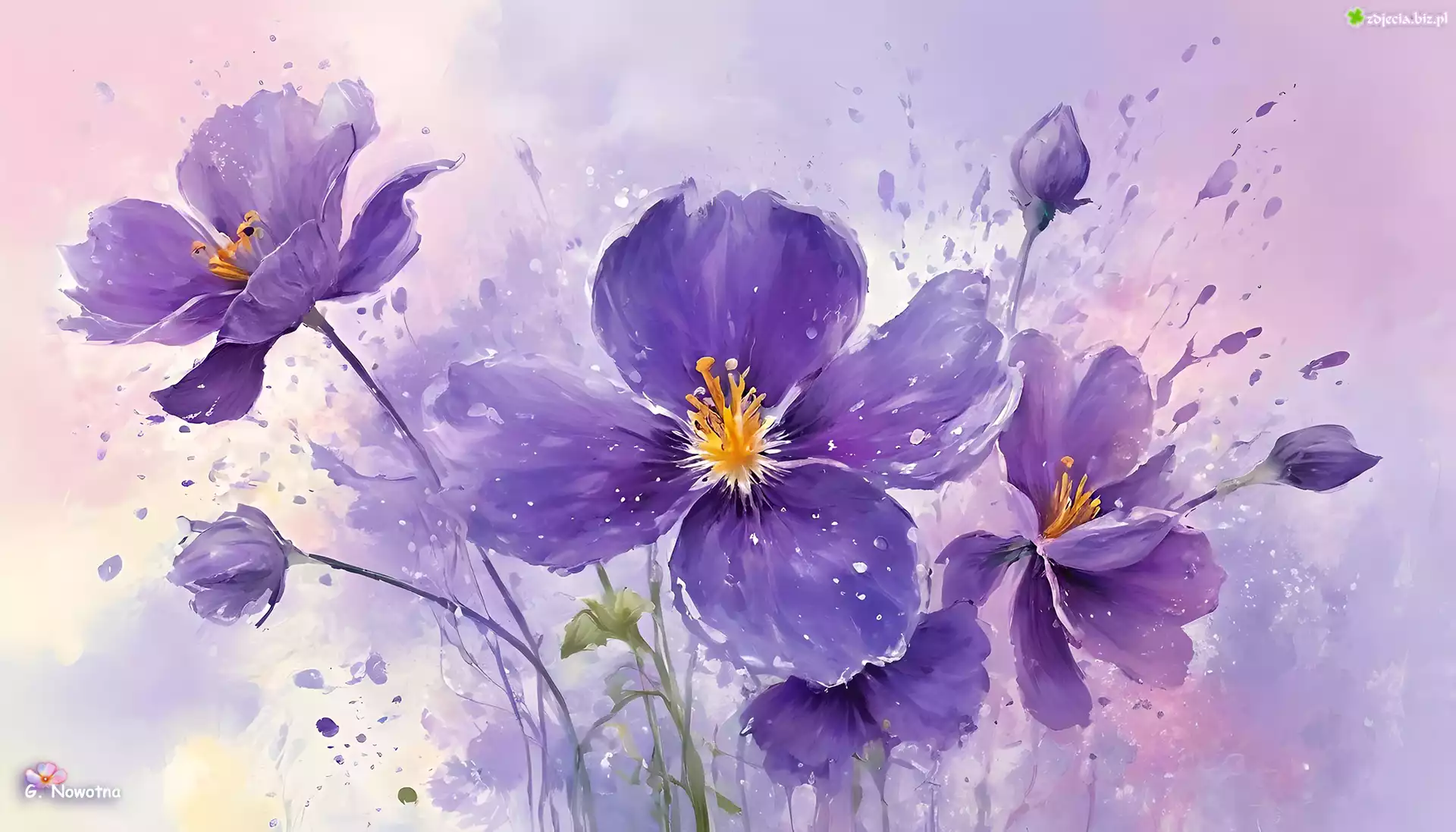 Zdjęcie Fioletowe, Kwiaty, Pąki, Grafika