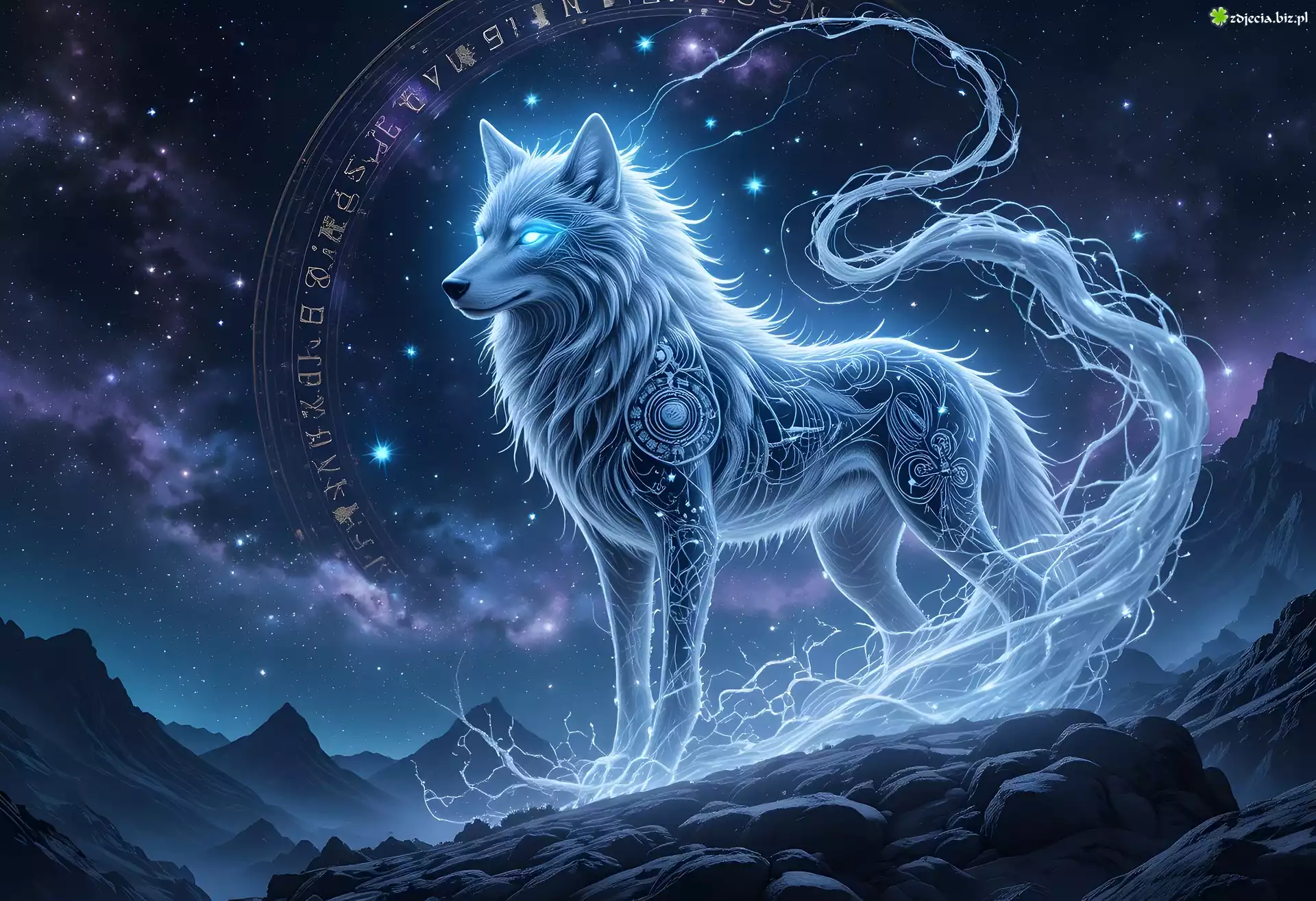 Zdjęcie Grafika, Wilk, Gwiazdy