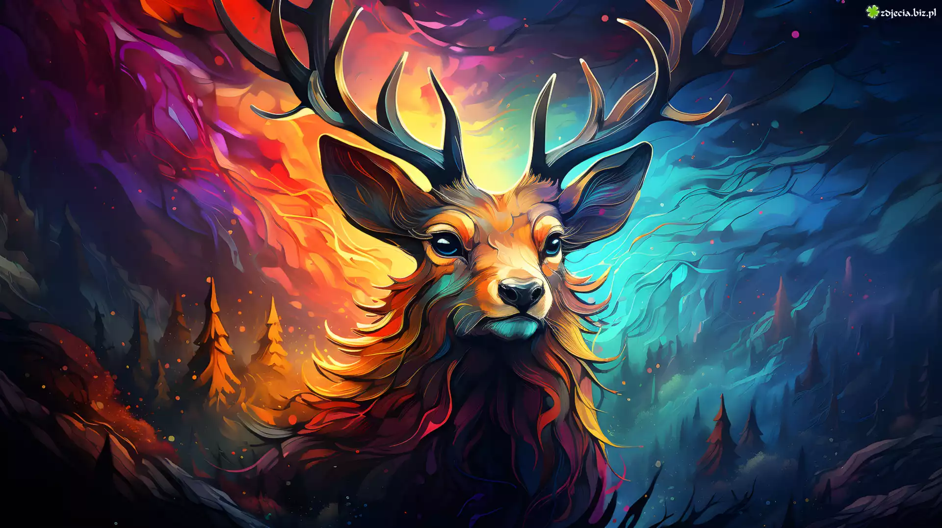 Zdjęcie Jeleń, Poroże, Las, Grafika