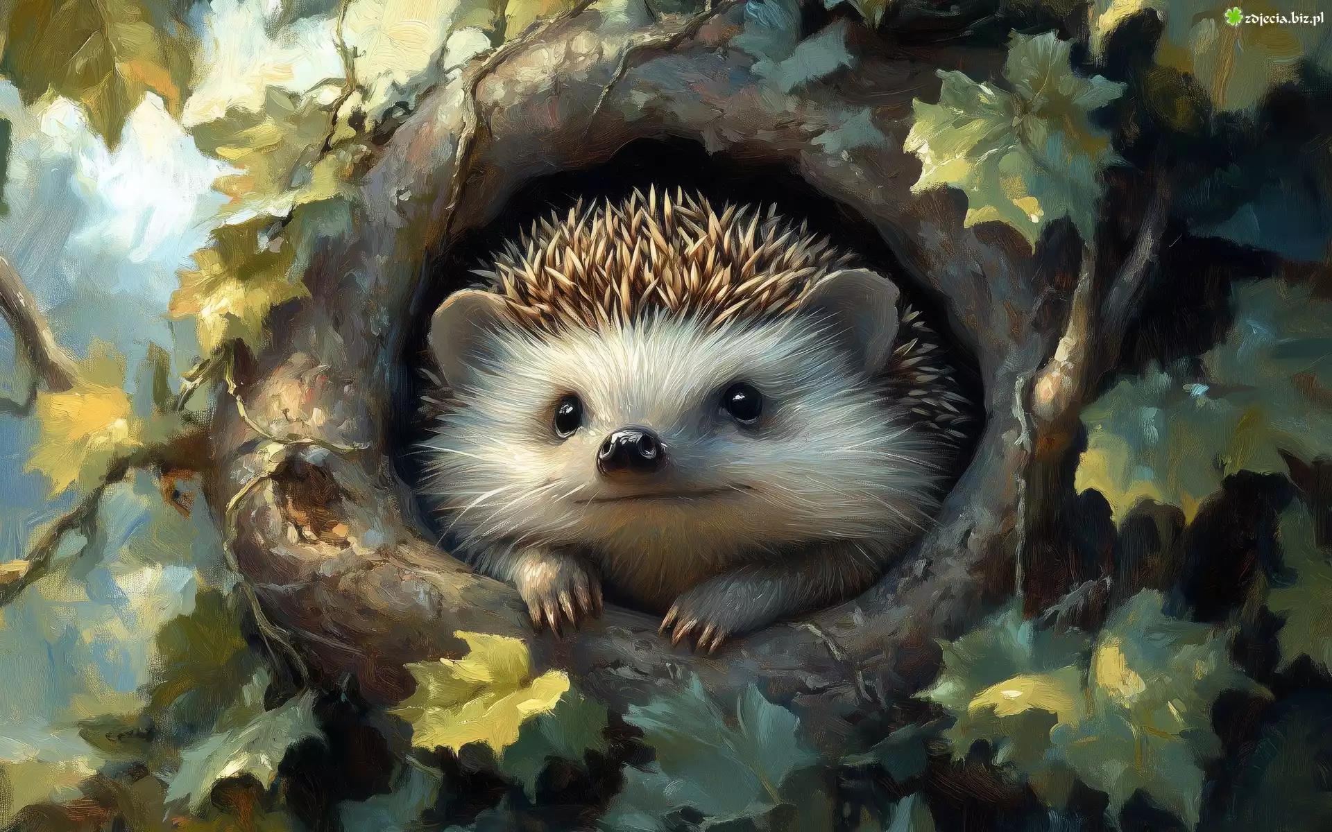 Zdjęcie Jeż, Gniazdo, Liście, Grafika