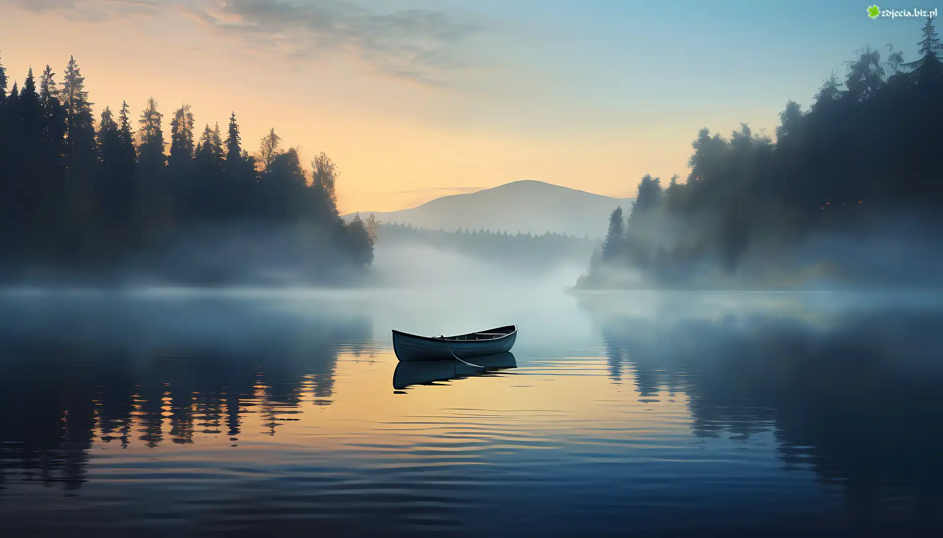 Zdjęcie Jezioro, Łódka, Drzewa, Grafika