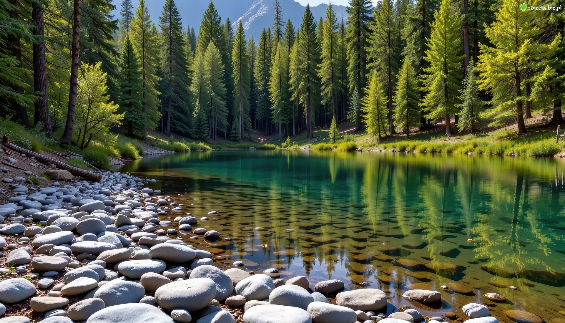 Zdjęcie Kamienie, Jezioro, Las, Grafika