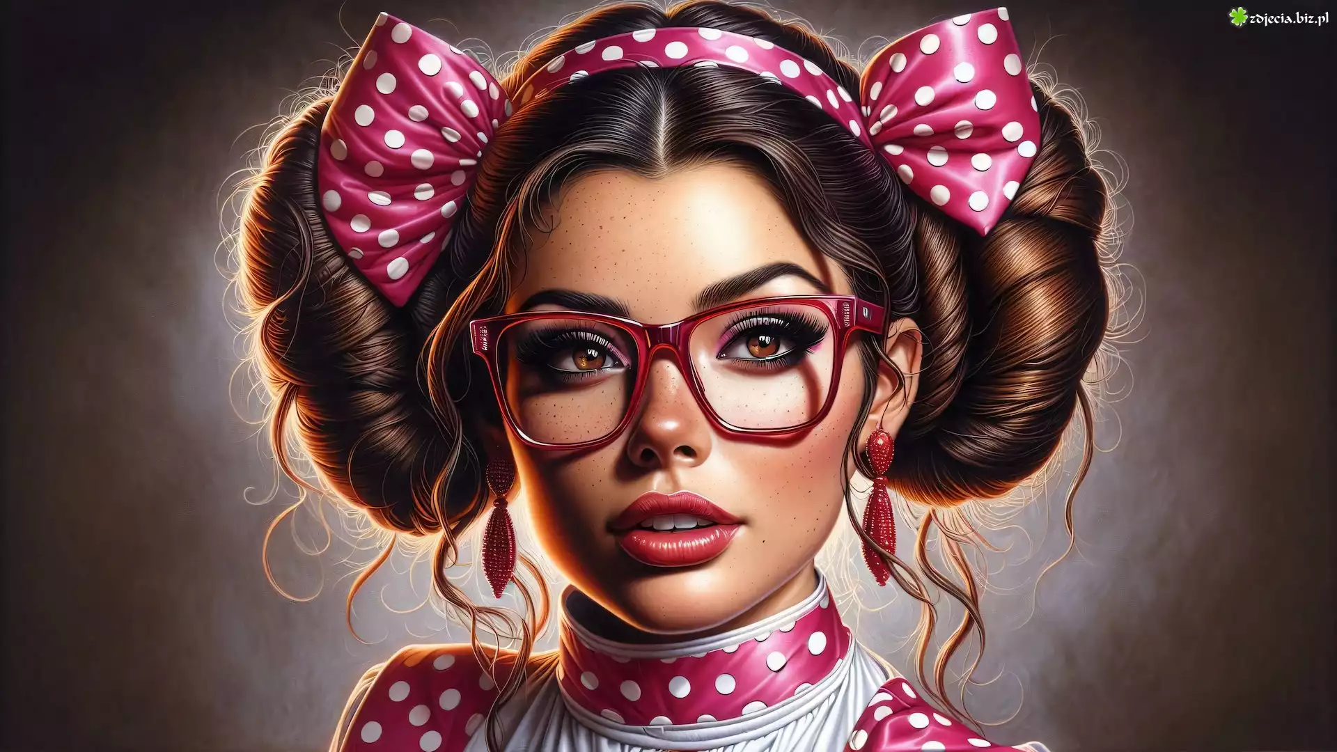 Zdjęcie Kobieta, Kokardy, Okulary, Grafika