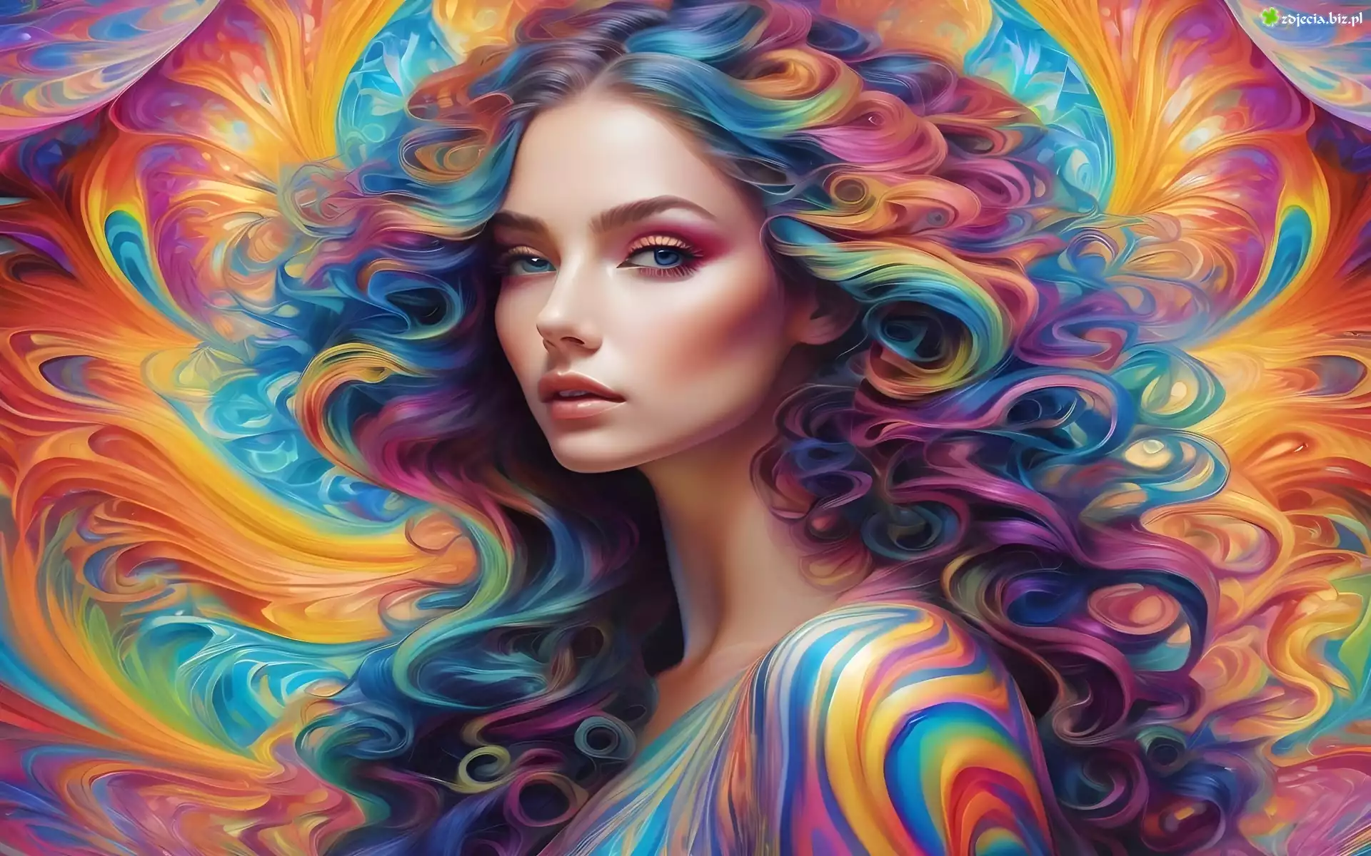 Zdjęcie Kobieta, Kolorowe, Tło, Grafika