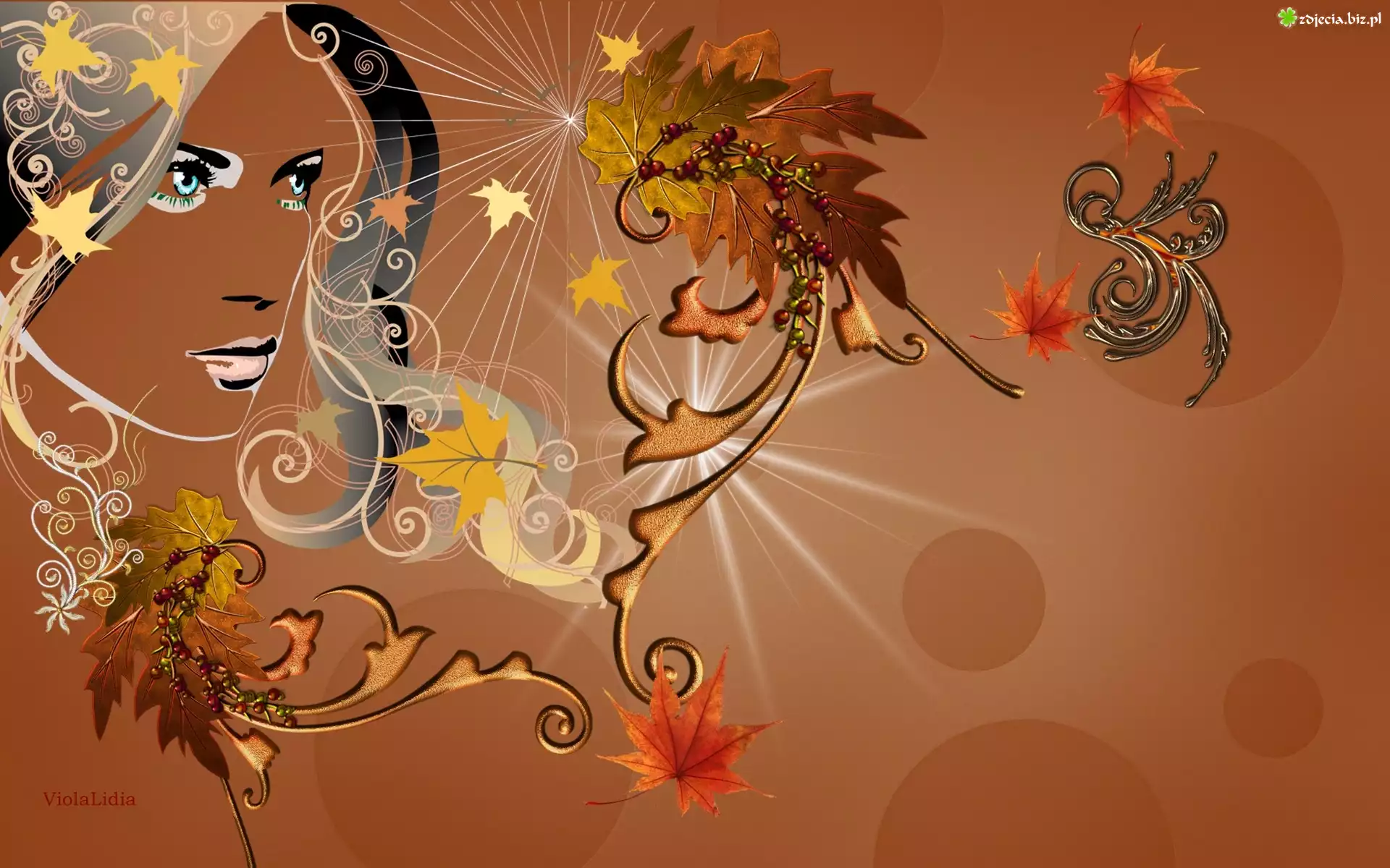 Zdjęcie Grafika, Twarz, Kobieta, Liście