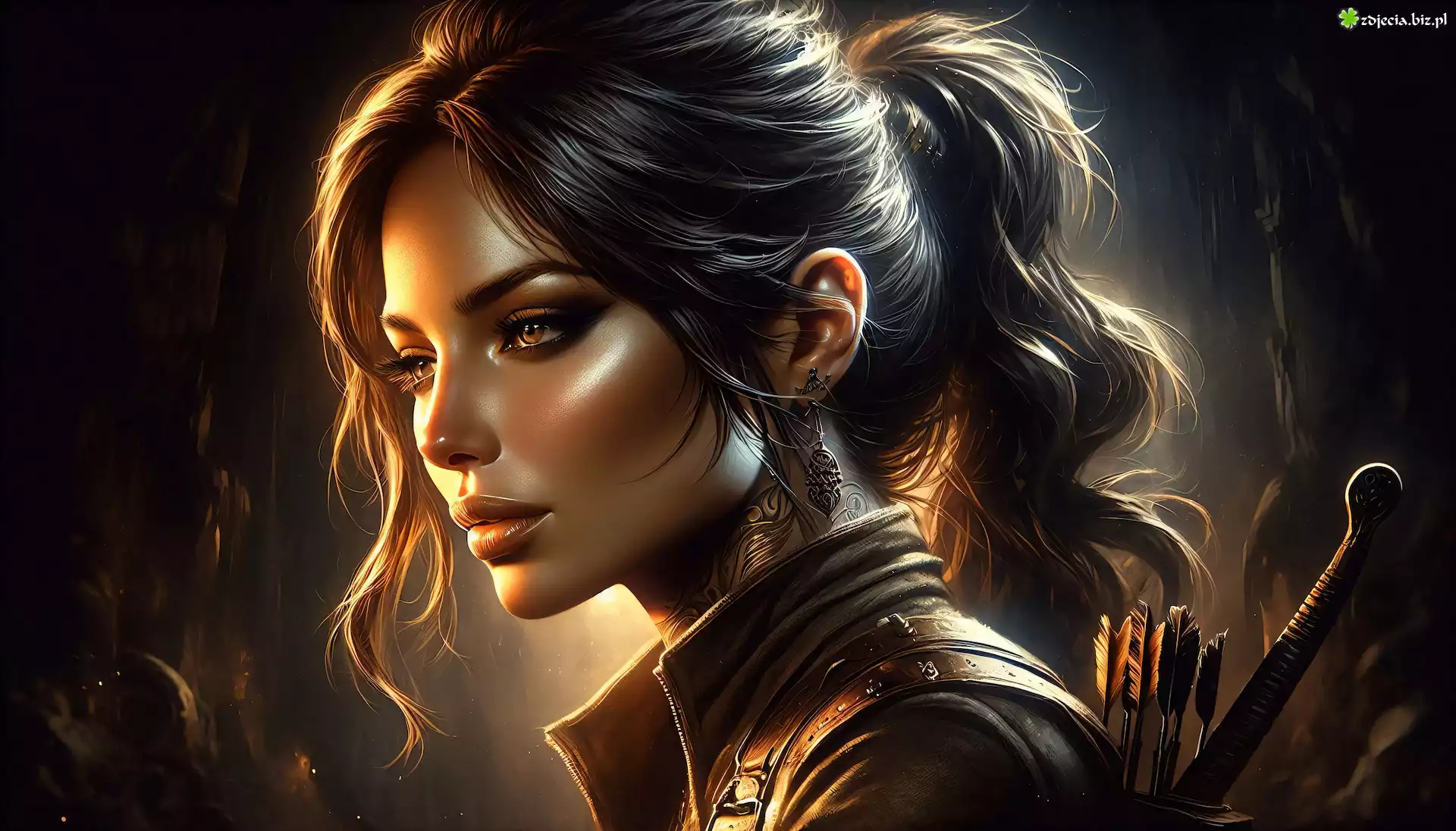 Zdjęcie Dziewczyna, Grafika, Kolczyk, Łuk, Strzały