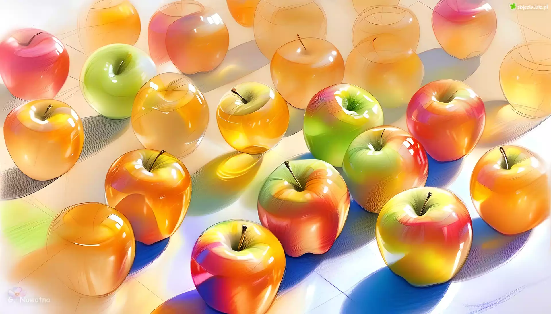 Zdjęcie Kolorowe, Rozświetlone, Jabłka, Grafika