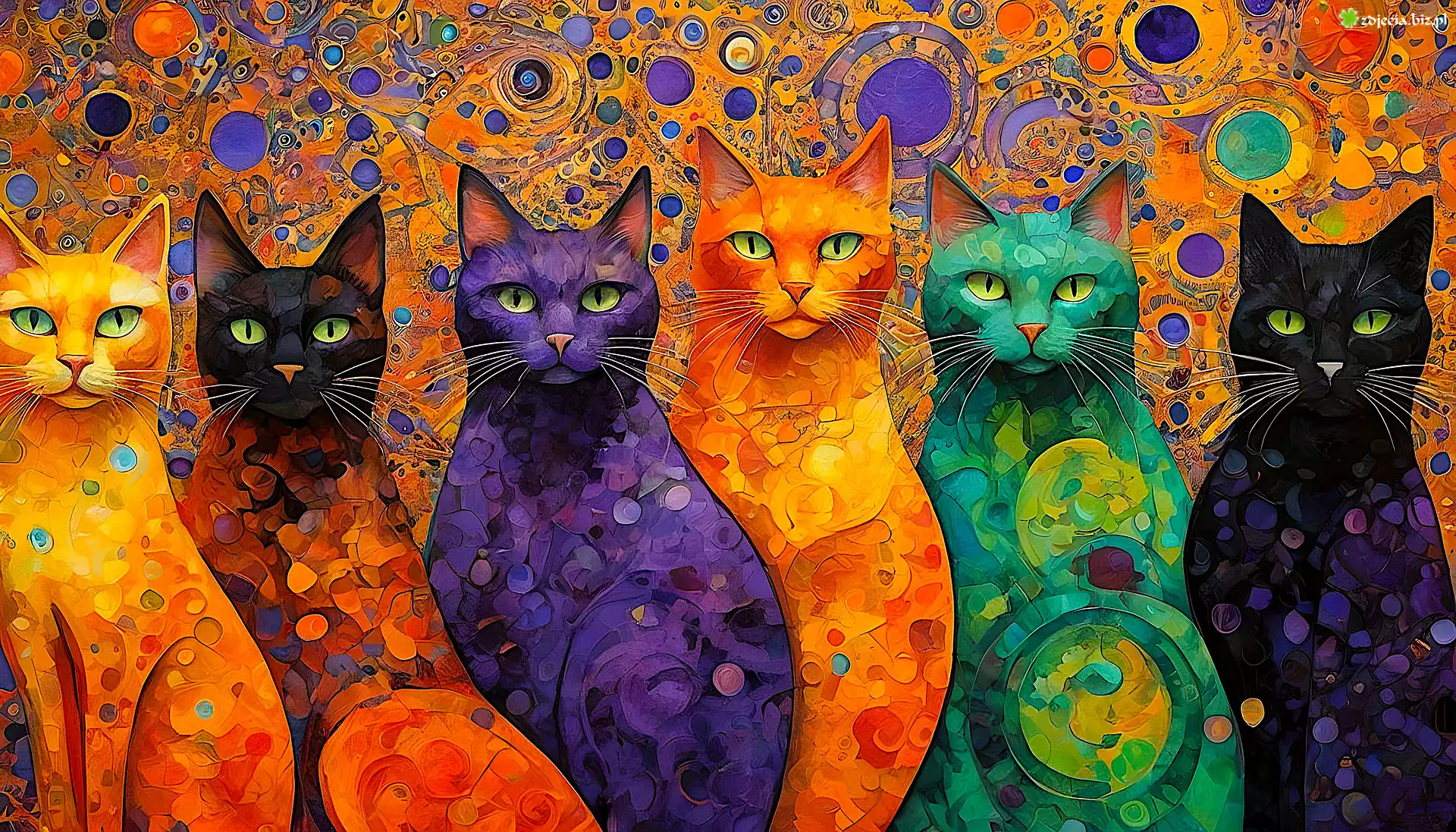 Zdjęcie Kolorowe, Koty, Tło, Grafika