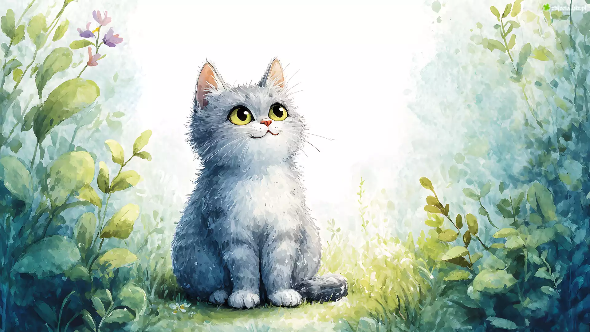 Zdjęcie Kot, Rośliny, Liście, Grafika