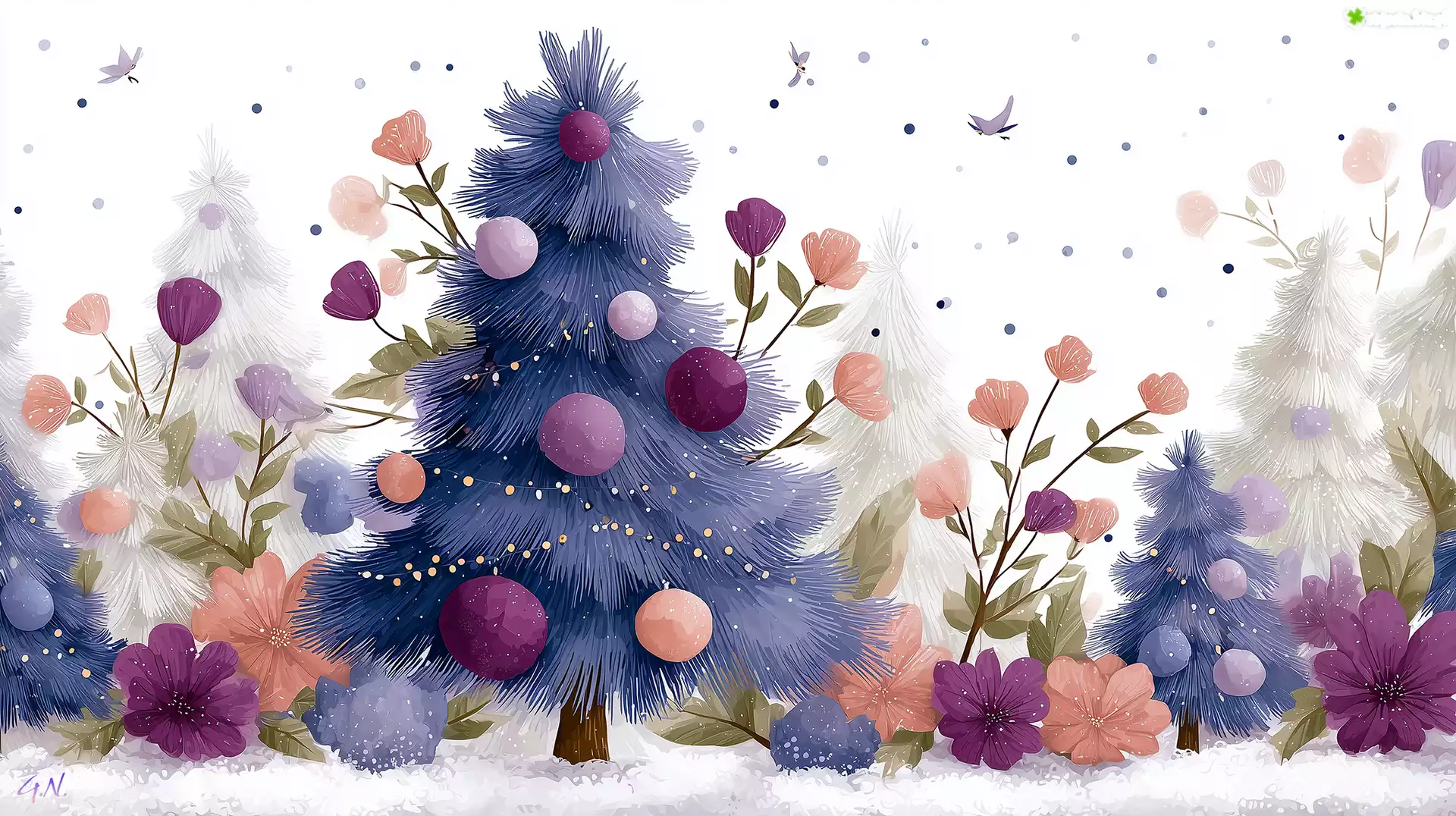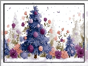 Zdjęcie Choinka, Bombki, Kwiaty, Grafika AI, Boże Narodzenie