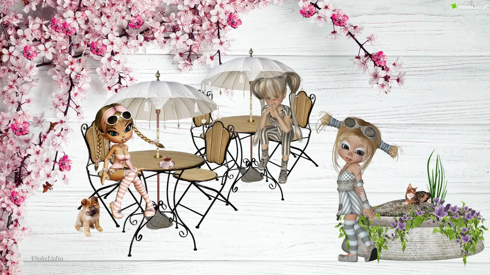 Zdjęcie, Grafika, Laleczki, Kwiaty, Stoliki