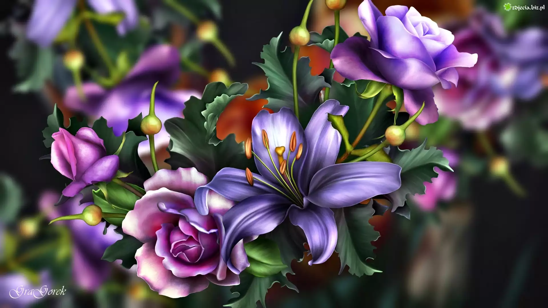 Zdjęcie Kwiaty, Róże, Lilia, Grafika