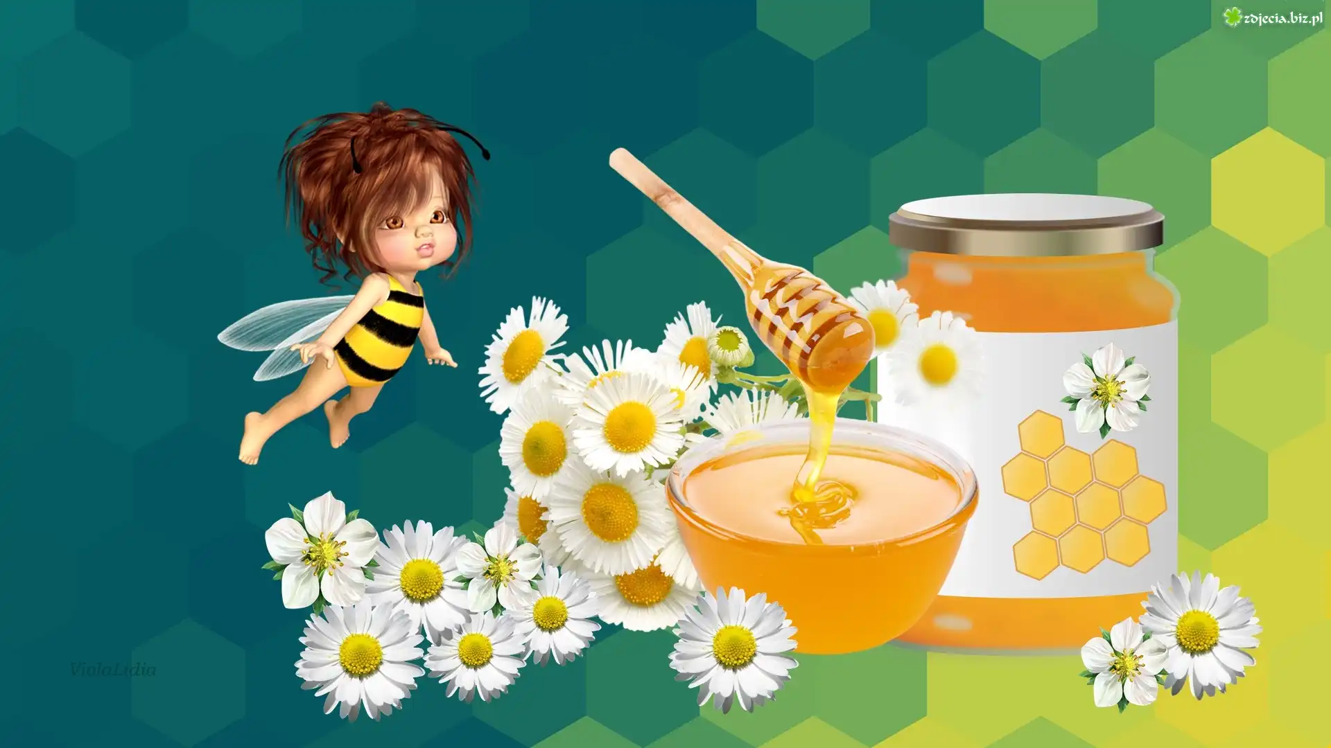 Zdjęcie Grafika, Miód, Kwiaty, Laleczka