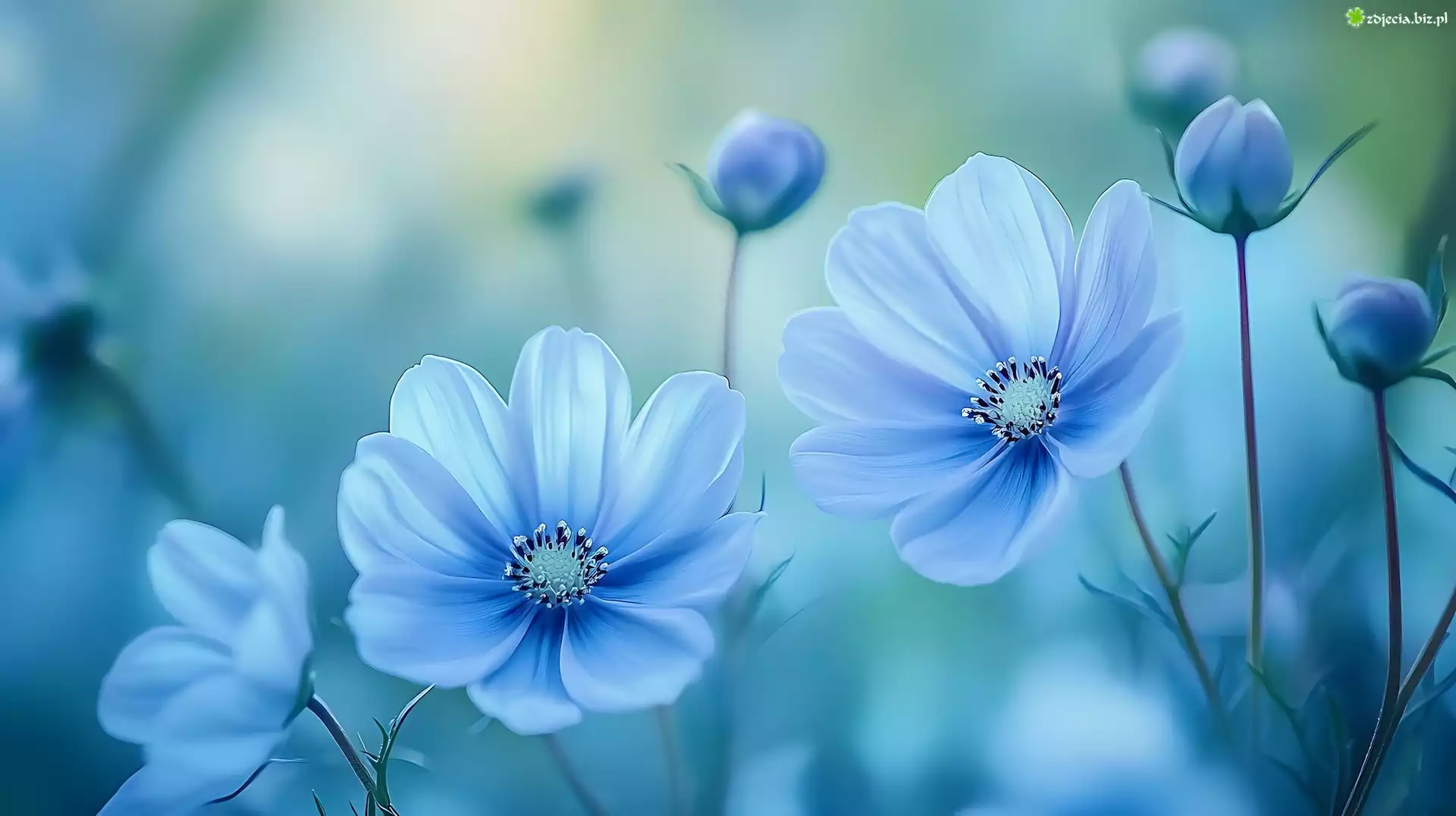 Zdjęcie Kwiaty, Niebieskie, Pąki, Grafika