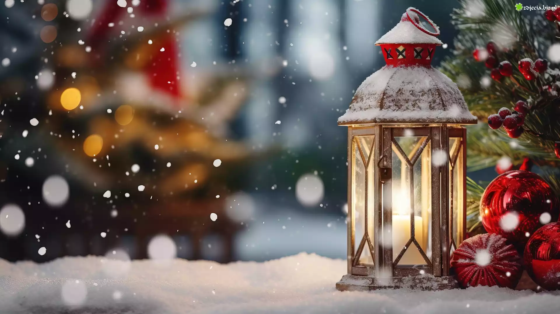 Zdjęcie Lampion, Bombki, Śnieg, Grafika