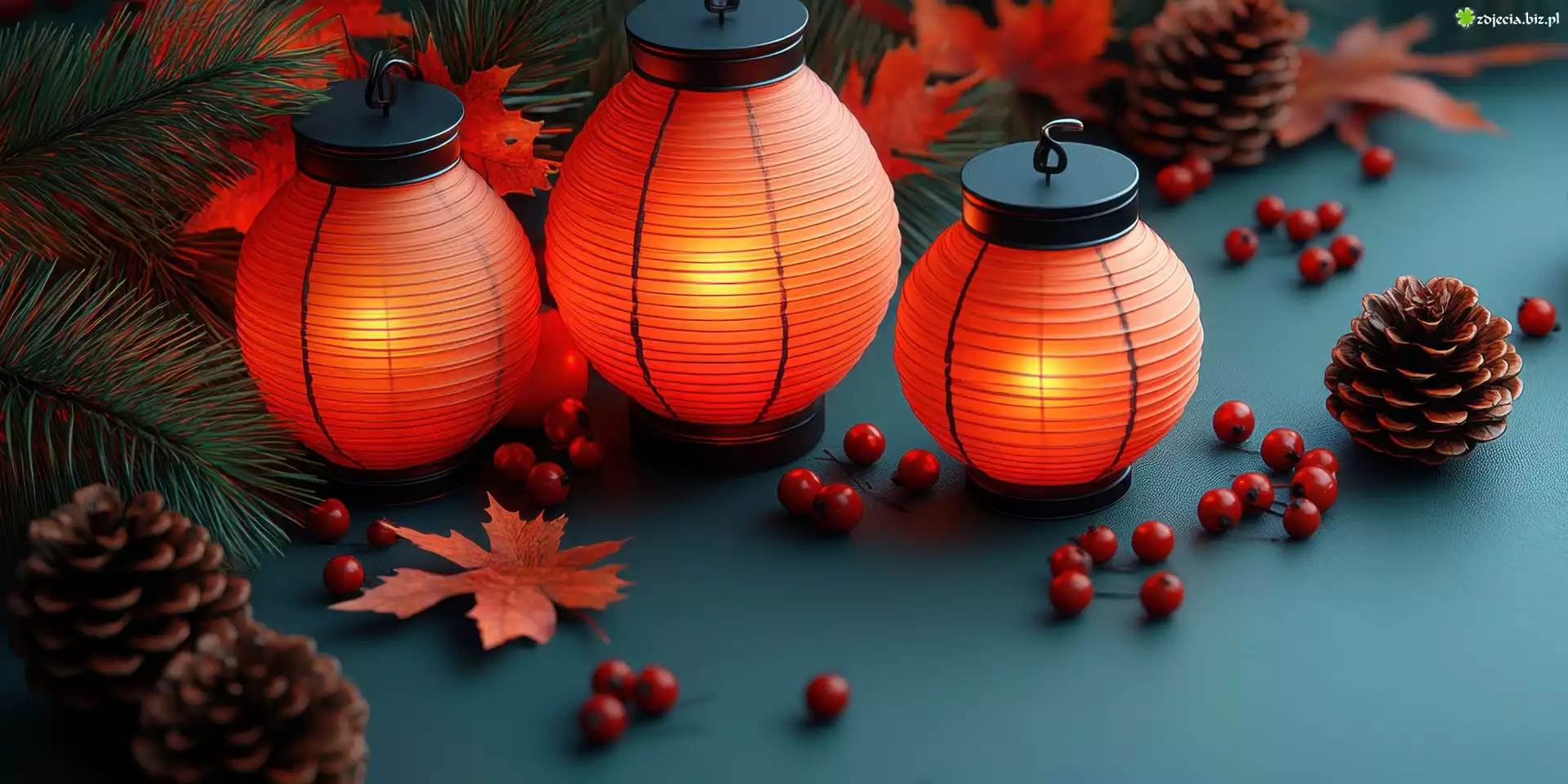 Zdjęcie Lampiony, Szyszki, Liście, Grafika