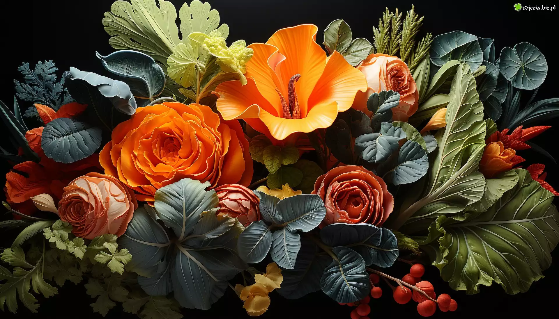 Zdjęcie Liście, Kwiaty, Kolorowe, Grafika