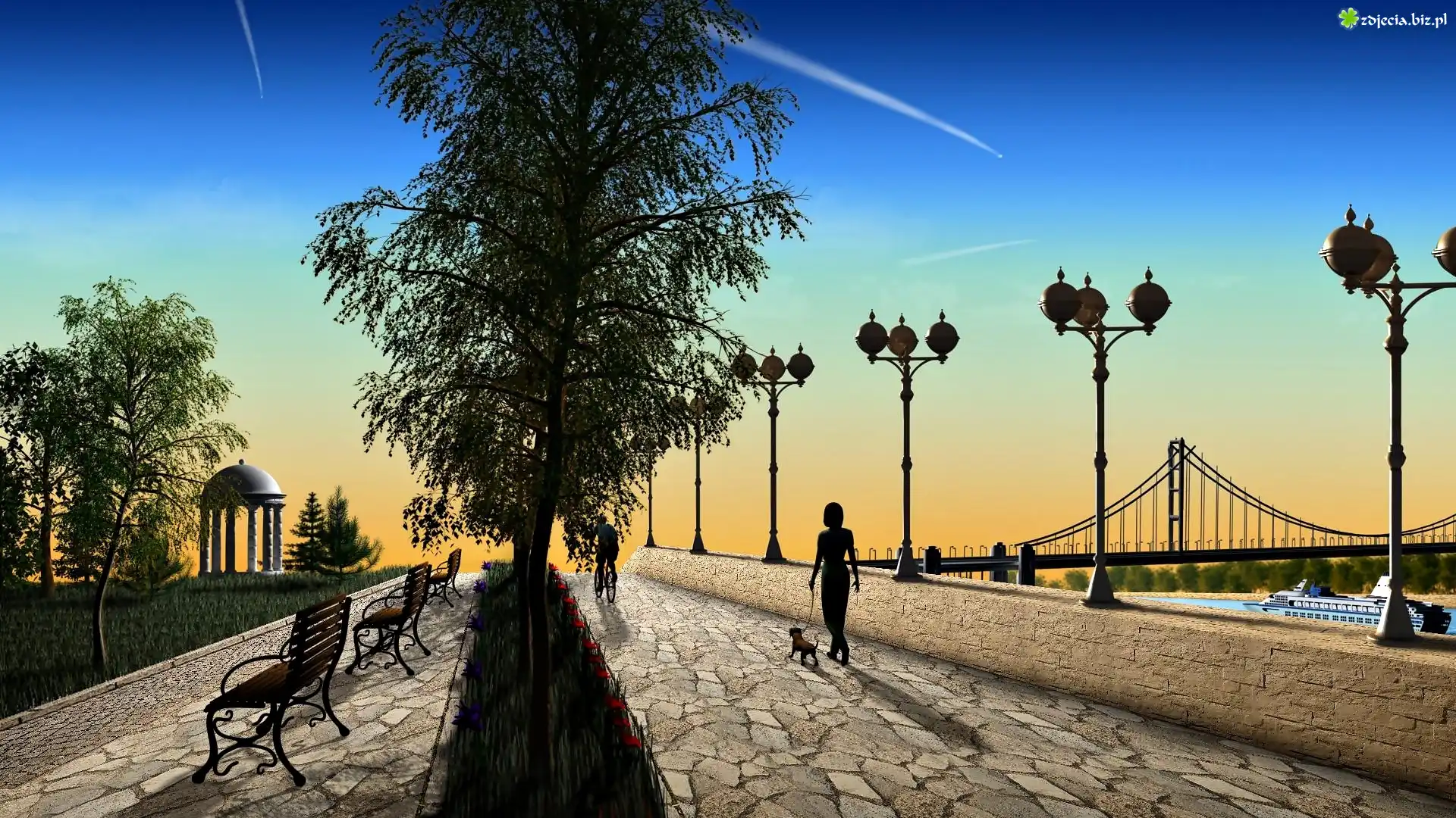 Zdjęcie Grafika, Promenada, Ludzie, Most