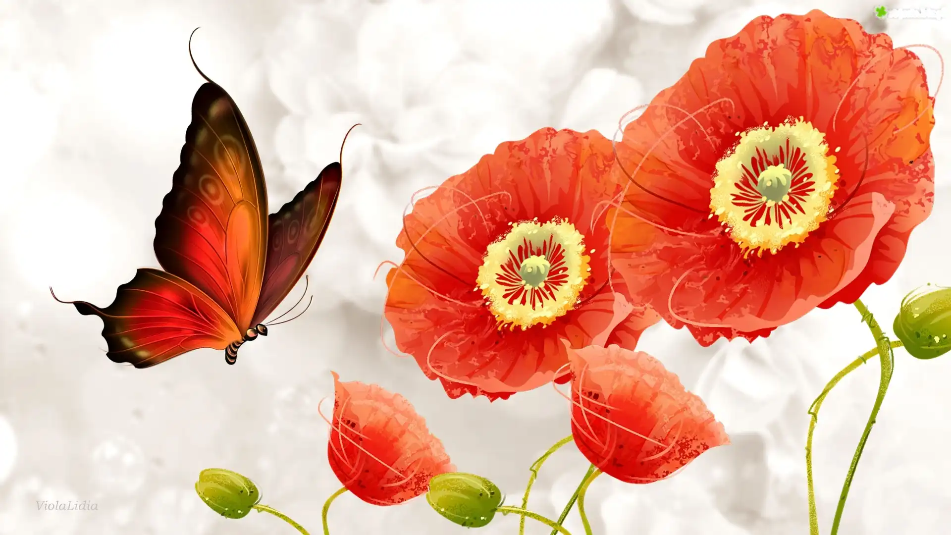 Zdjęcie Grafika, Kwiaty, Maki, Motyl