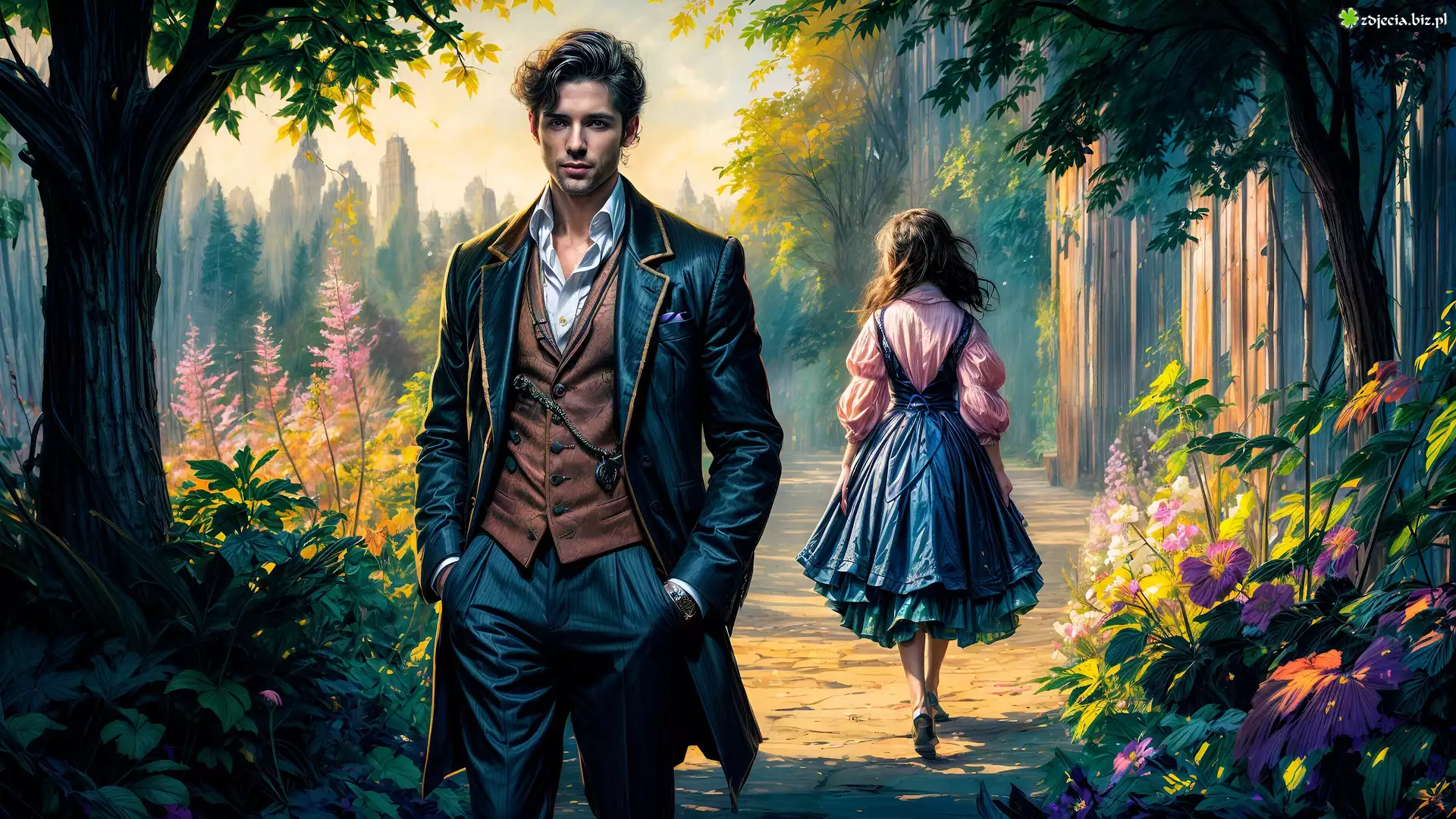 Zdjęcie Mężczyzna, Kobieta, Ścieżka, Grafika