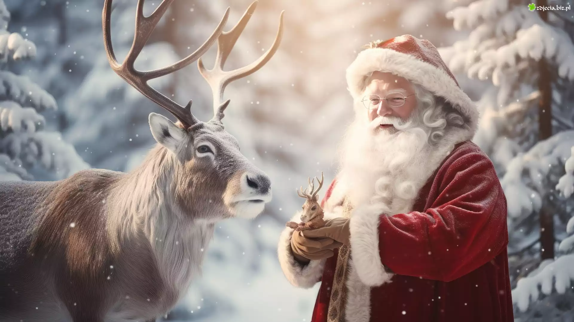 Zdjęcie Mikołaj, Renifer, Zima, Grafika