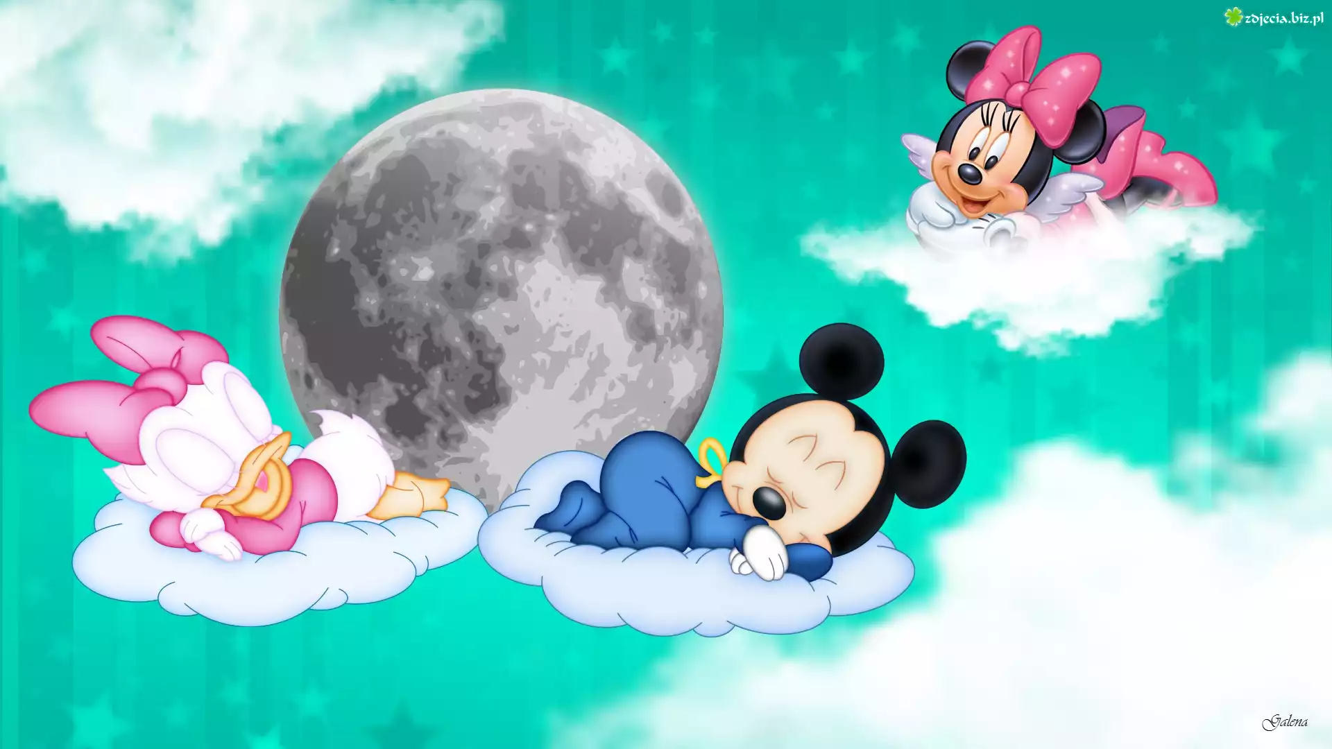 Zdjęcie Chmury, Księżyc, Niebo, Daisy, Minnie, Mickey, Dla dzieci, Sen, Grafika