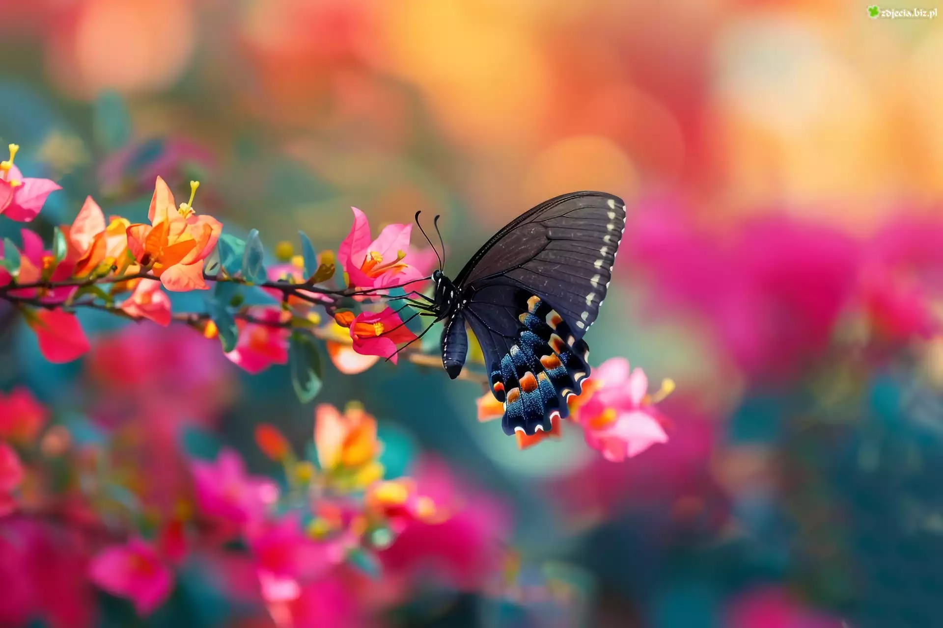 Zdjęcie Motyl, Kwiaty, Bugenwilla, Grafika