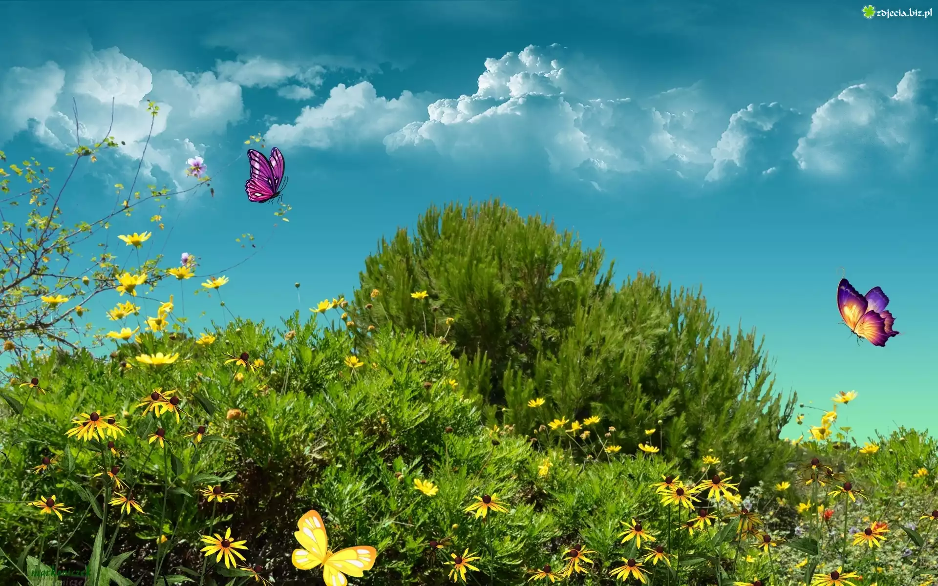 Zdjęcie Grafika, Roślinność, Motyle, Niebo