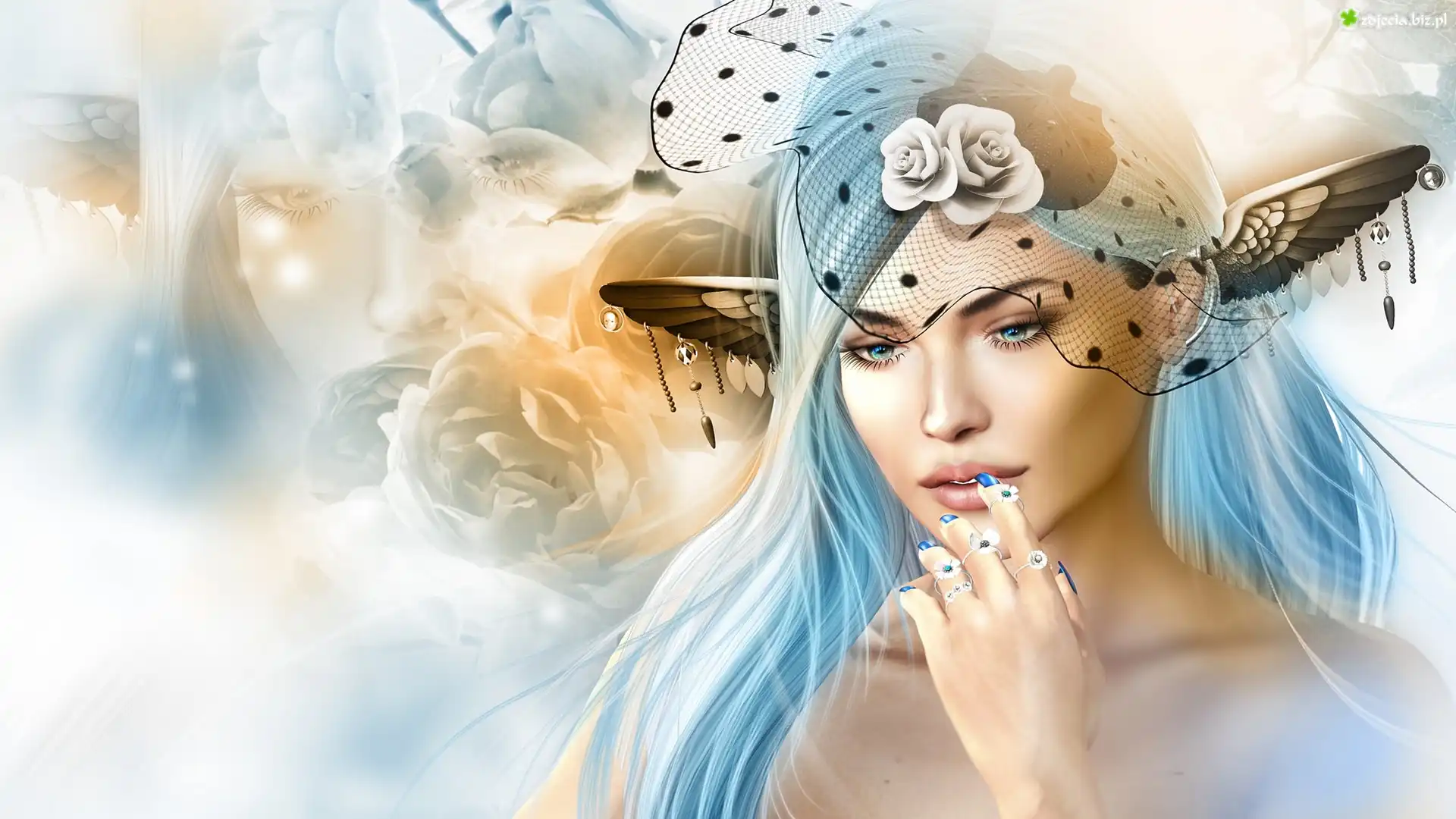 Zdjęcie Grafika 2D, Kobieta, Woalka, Niebieskie, Włosy