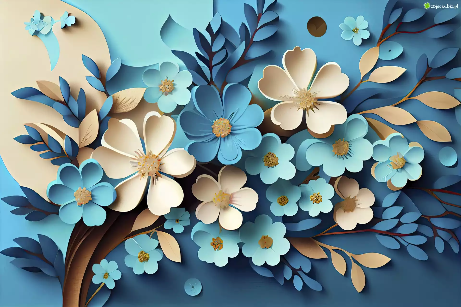 Zdjęcie, Niebieskie, Beżowe, Kwiaty, Grafika