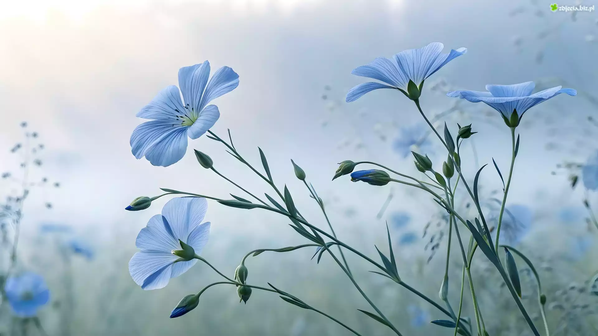 Zdjęcie Niebieskie, Kwiaty, Len, Mgła, Grafika