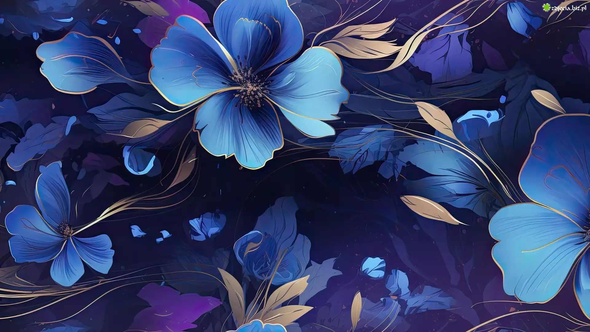 Zdjęcie Niebiesko-złote, Kwiaty, Grafika