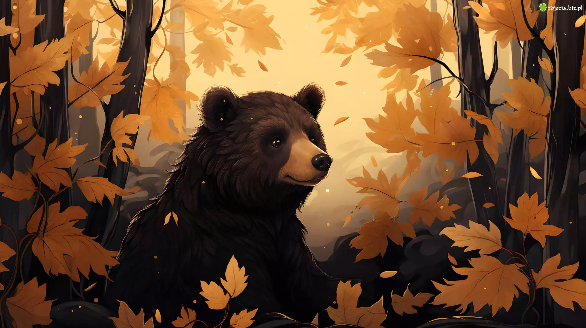 Zdjęcie Niedźwiedź, Las, Jesień, Grafika