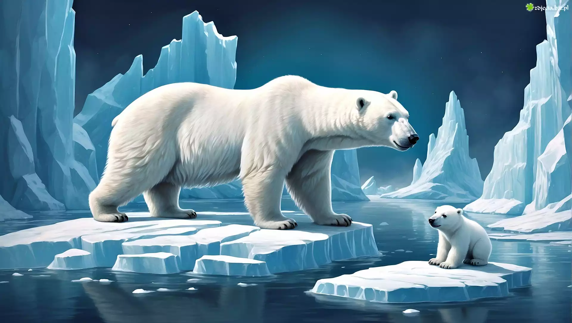 Zdjęcie Niedźwiedź, Polarny, Niedźwiedzie, Grafika, Kry, Lodowe, Grafika