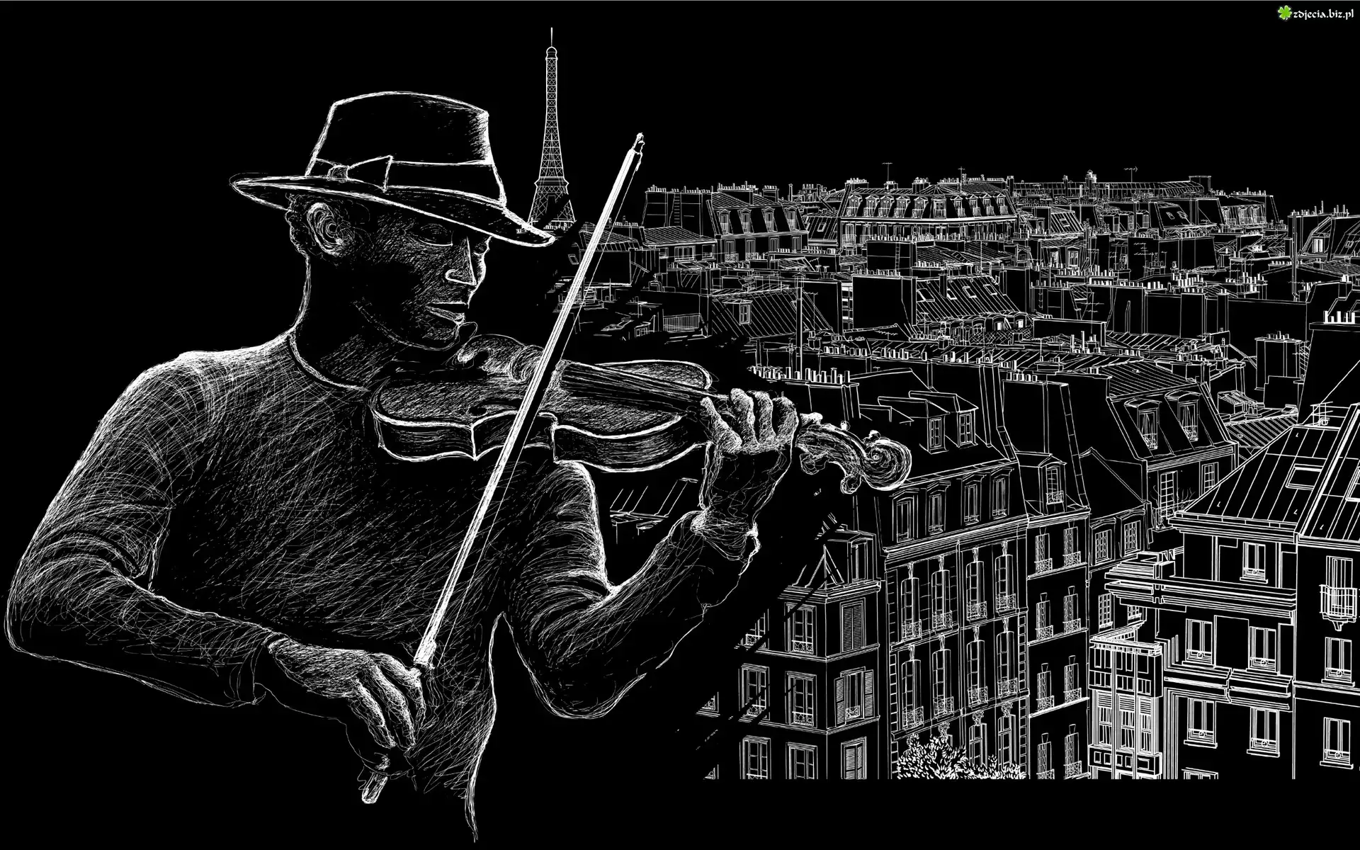Zdjęcie Grafika, Mężczyzna, Skrzypce, Panorama, Miasta