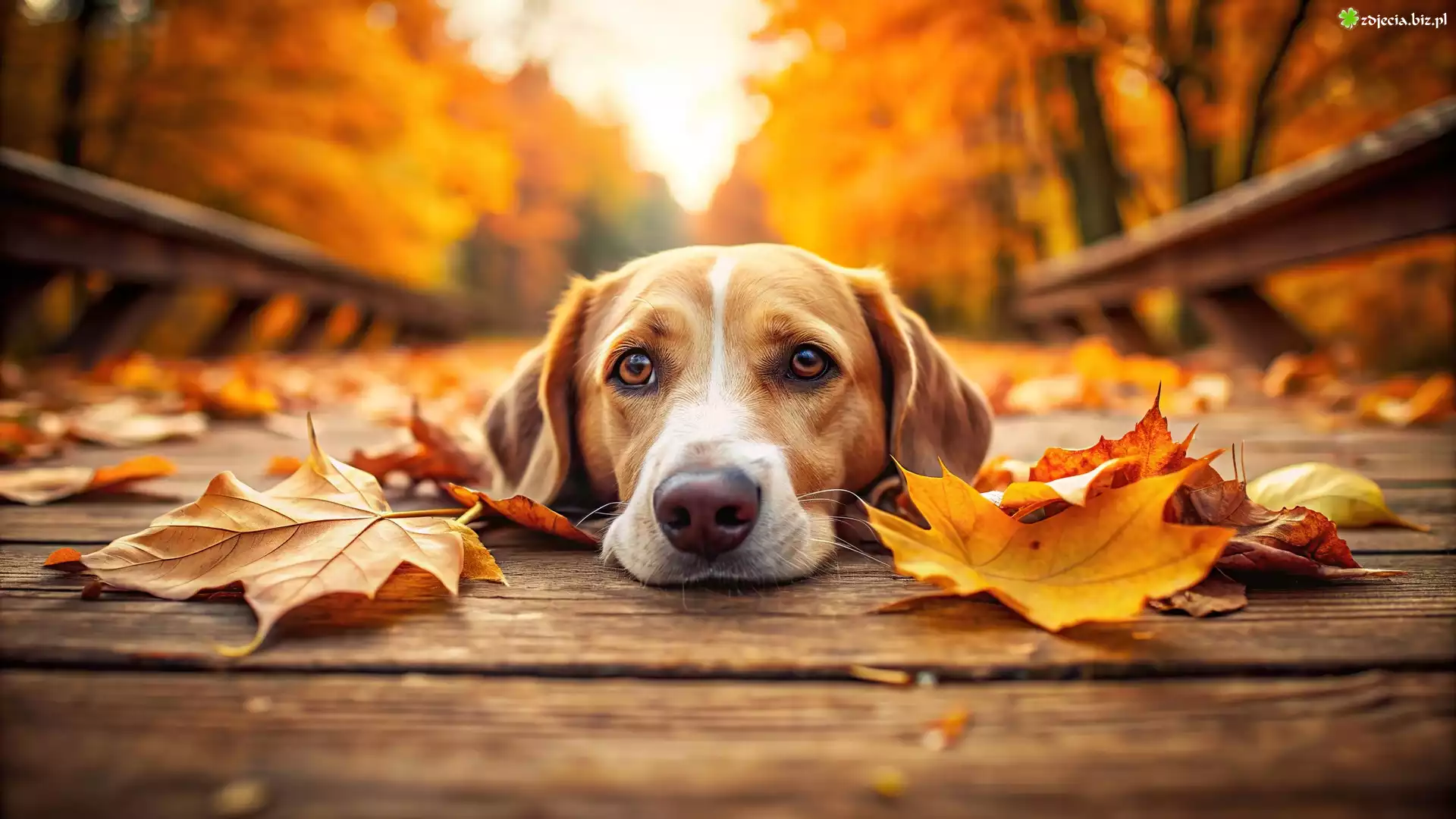 Zdjęcie Pies, Liście, Jesień, Grafika