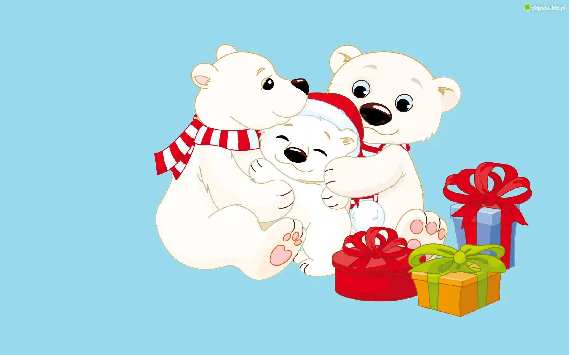 Zdjęcie Grafika 2D, Misie, Rodzinka, Prezenty, Mikołajki