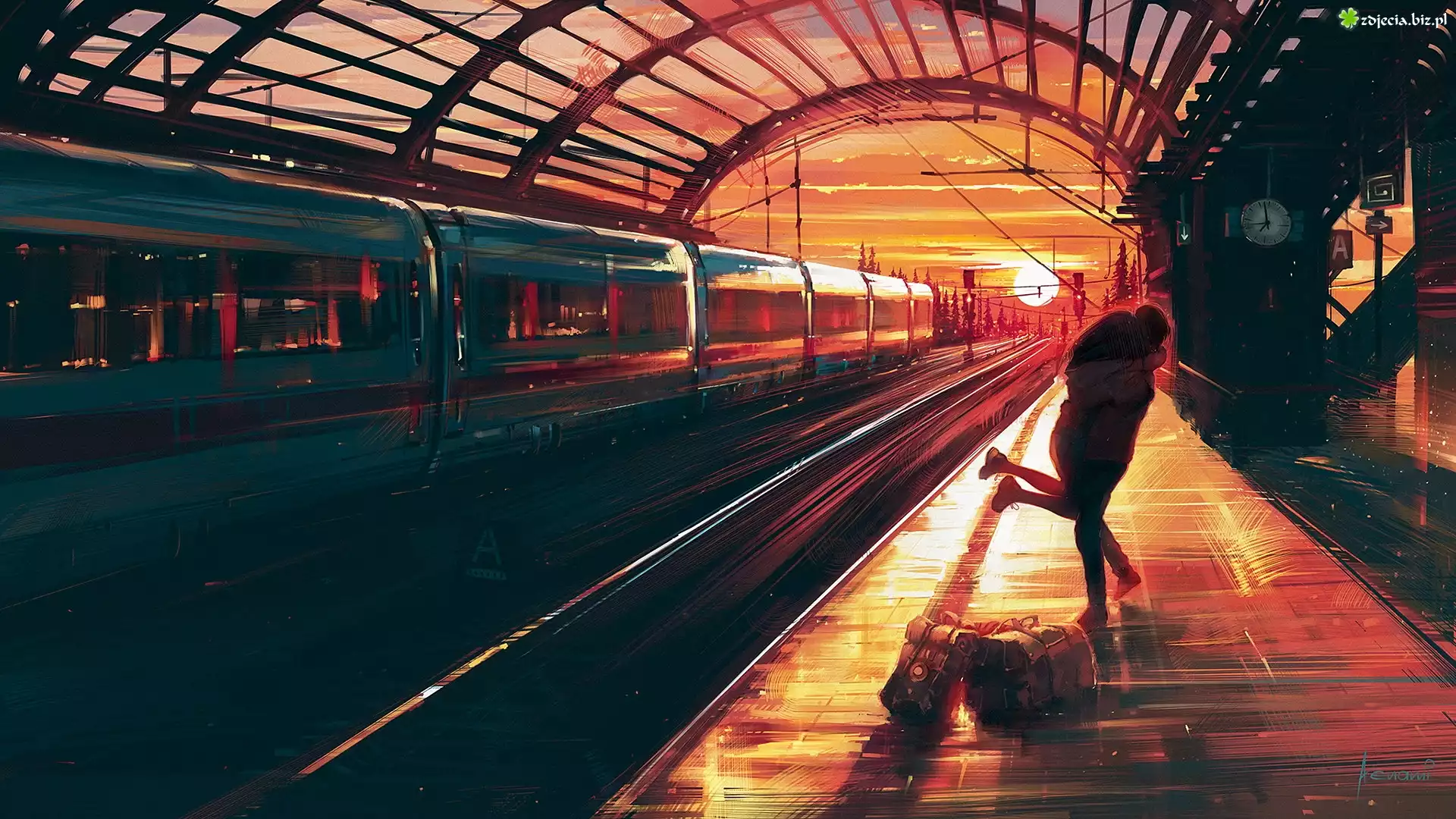 Zdjęcie Grafika, Dworzec, Peron, Pociąg, Przywitanie, Para