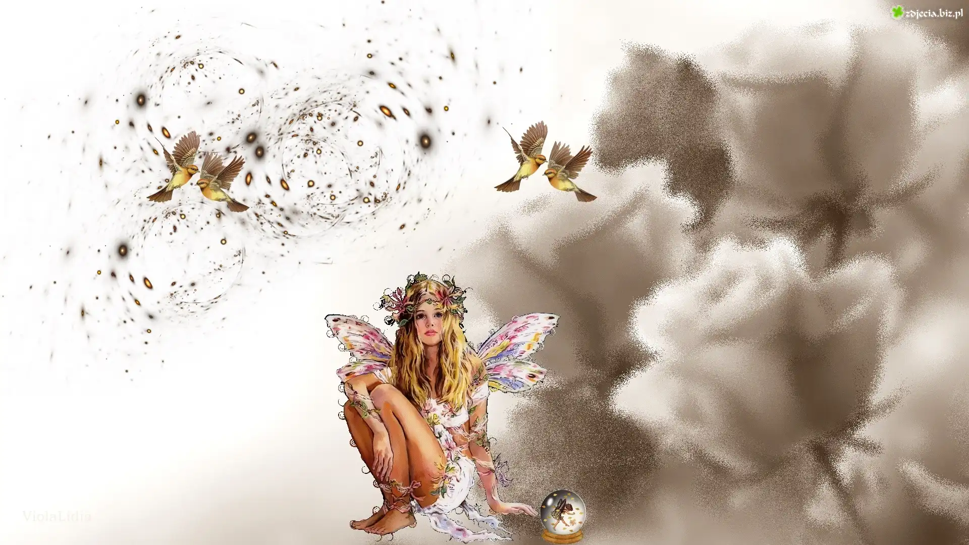 Zdjęcie Grafika, Róże, Ptaszki, Ptaki, Elf