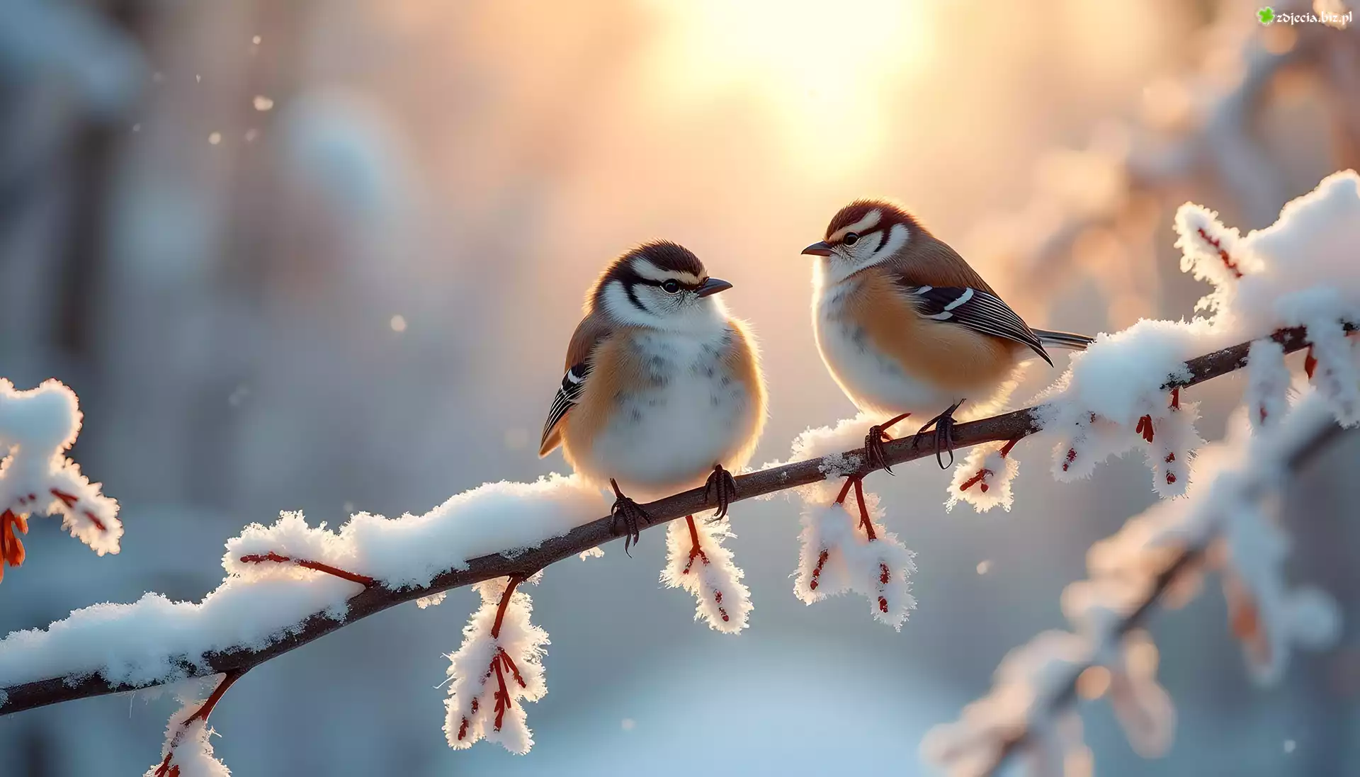 Zdjęcie Ptaki, Gałąź, Śnieg, Grafika