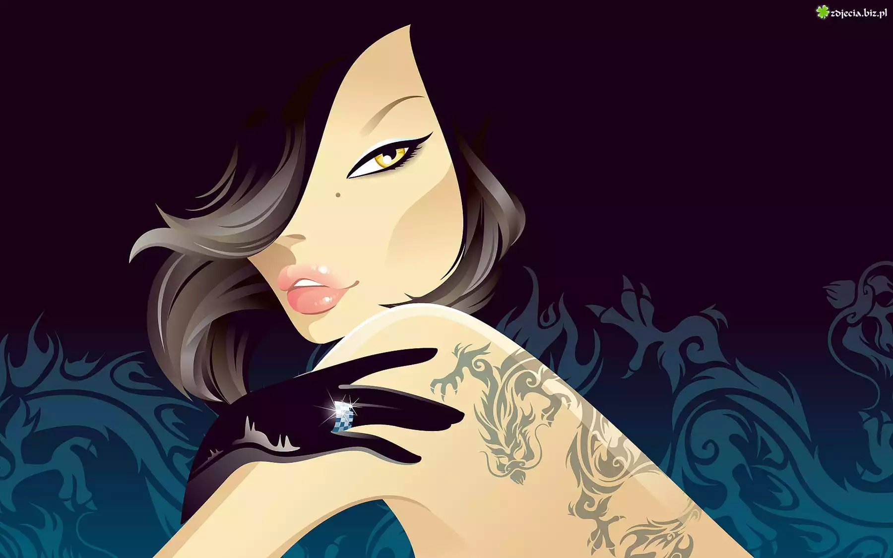 Zdjęcie Grafika, Dziewczyna, Pierścionek, Rękawiczka, Tatuaż