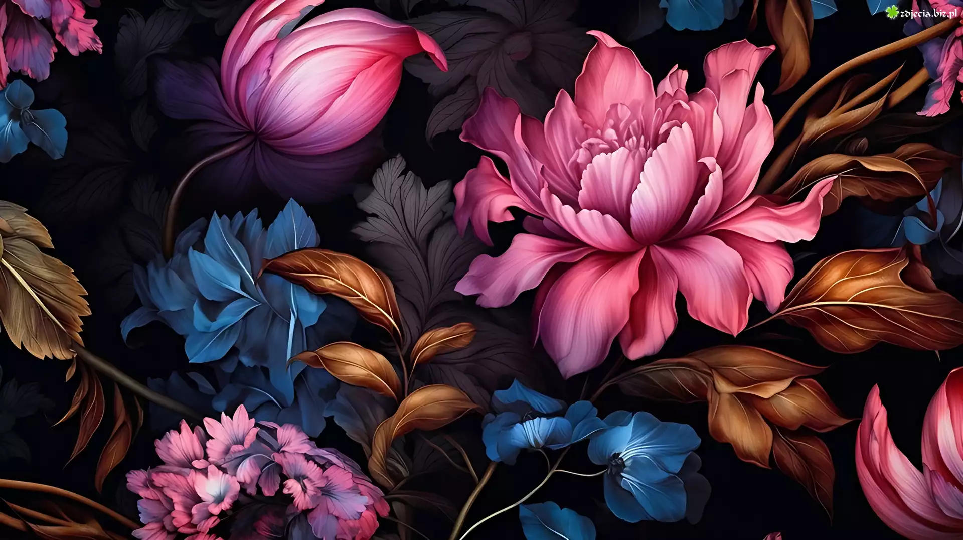 Zdjęcie Różnokolorowe, Kwiaty, Listki, Grafika
