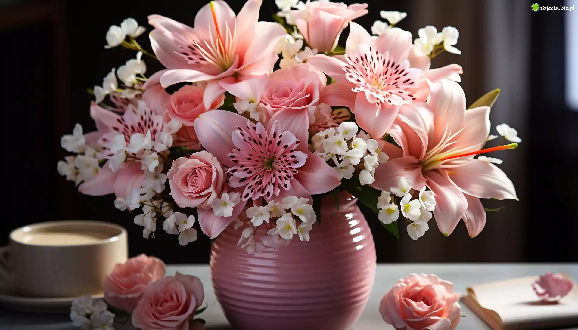 Zdjęcie Różowe, Kwiaty, Bukiet, Grafika