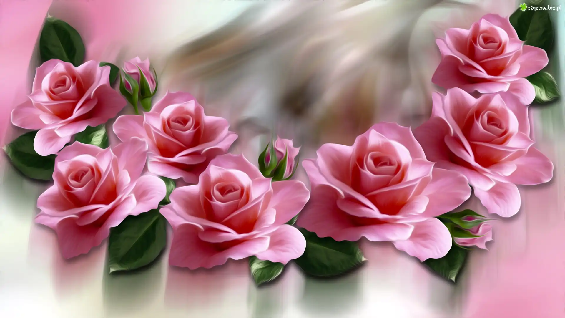 Zdjęcie Grafika, Kwiaty, Róże, Różowe, Listki