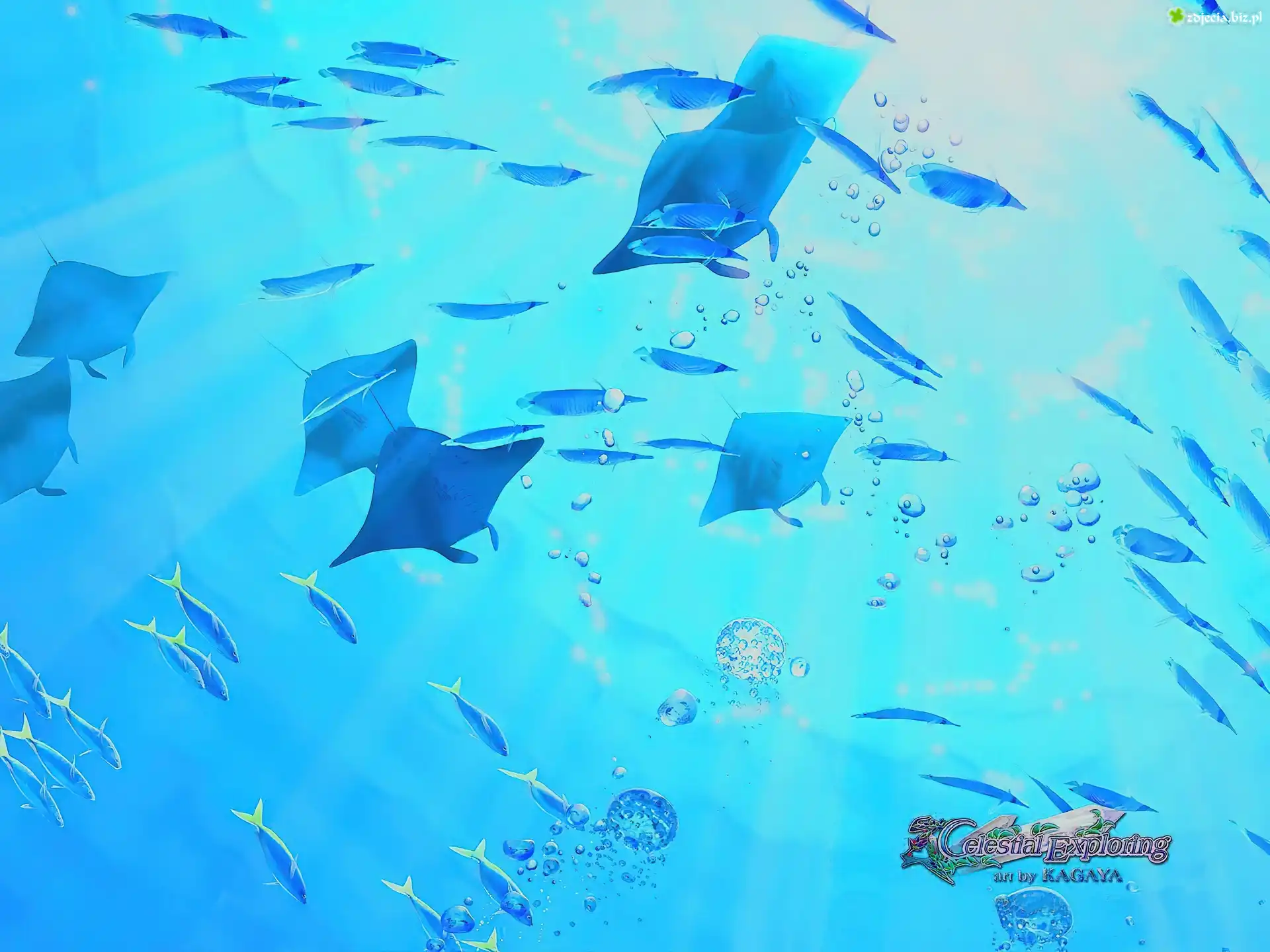 Zdjęcie Grafika, Kagaya, Płaszczki, Ryby, Światło