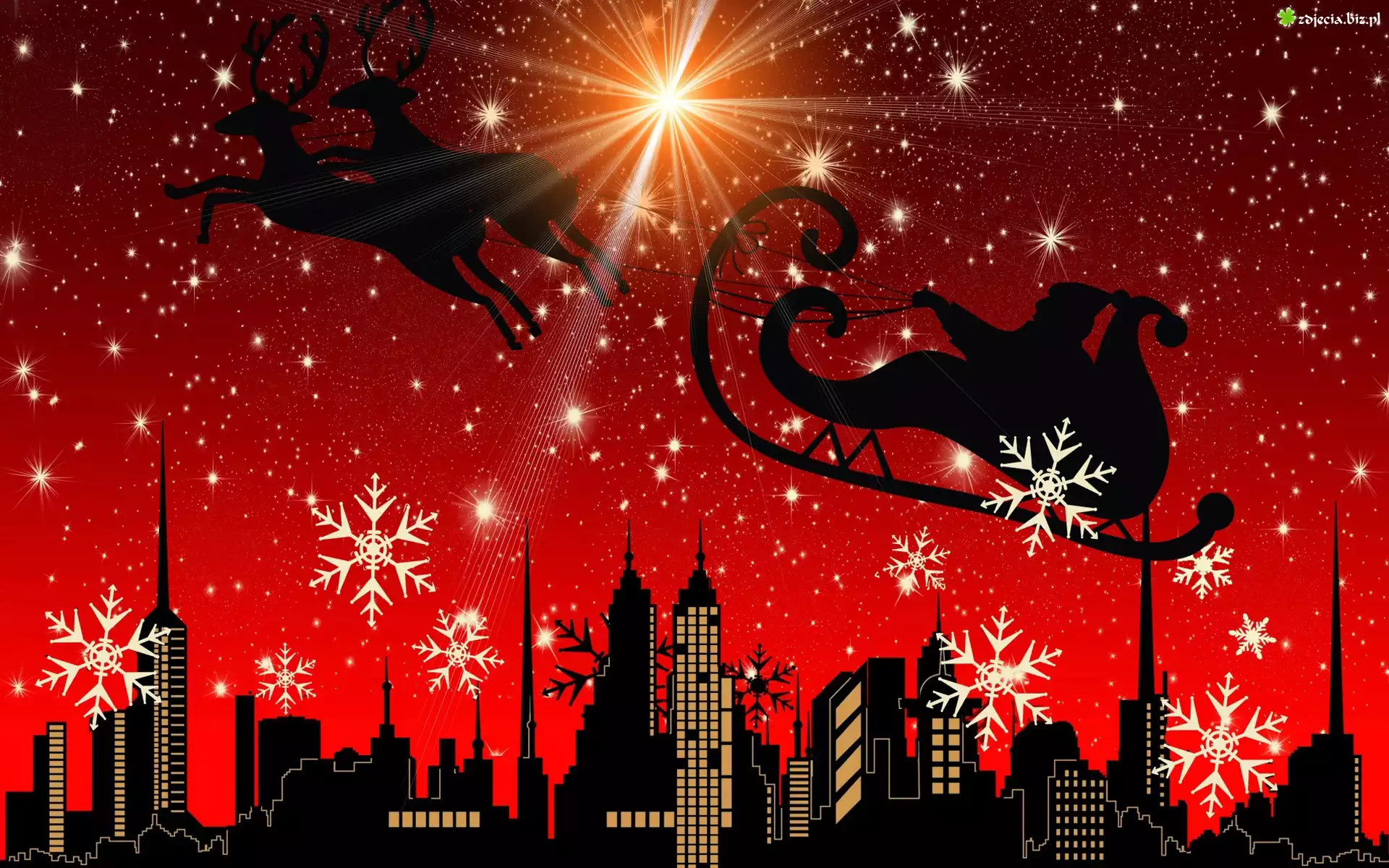 Zdjęcie Grafika, Świątecznie, Mikołaj, Sanie, Renifery