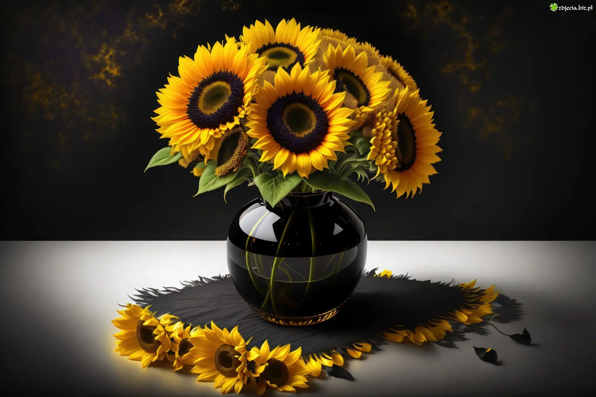 Zdjęcie Słoneczniki, Wazon, Serwetka, Grafika