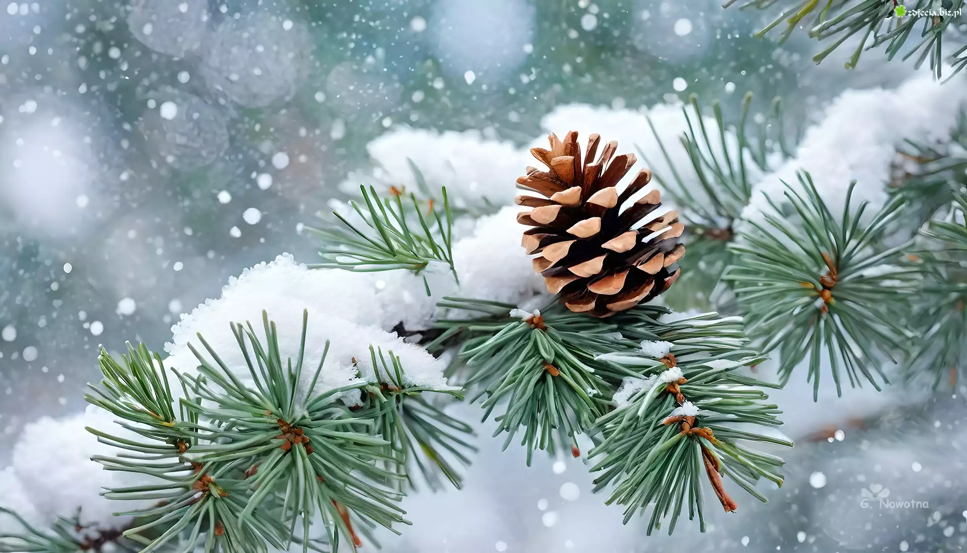 Zdjęcie Sosna, Szyszka, Śnieg, Grafika